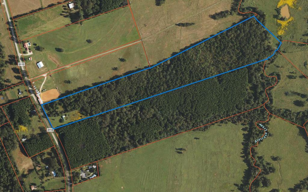 This pretty, 34-acre property includes a mature tract of marketable timber & an open home site at the front with a creek border on the back line. Water & electric are installed. There's approximately 126 yards of road frontage. The existing mobile home is of no value. No minerals conveyed.