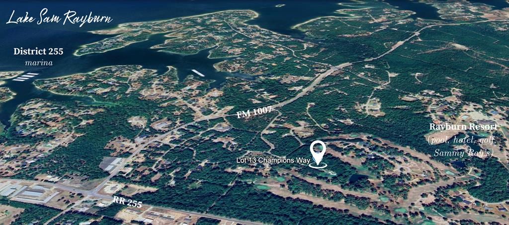A half acre lot with GOLF COURSE FRONTAGE ready for a new owner and a new build on Champions Way in Rayburn Country! It offers a picturesque landscape for your future Rayburn Country home. Bring your creative ideas for your dream home that is just a short golf cart ride to the clubhouse, swimming pool, golf course, restaurants, and tennis courts at Rayburn Resort. This lot is minutes from the local boat launch and amenities. Rayburn Country is located on the southern end of Lake Sam Rayburn and is surrounded world class fishing, the Angelina National Forest, and is a prime Texas vacation spot. Enjoy versatile real estate opportunities from weekend vacation homes, retirement properties, and short term rentals in a sought after location. There is a small wet weather creek at the very front of the lot and it is priced accordingly to leave room for the new owner to put in a culvert. Bring us an offer!!