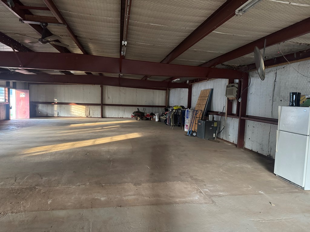 Has 3200 square ft metal building with concrete floor. Can be turned into a residence or storefront. Has a circle driveway.