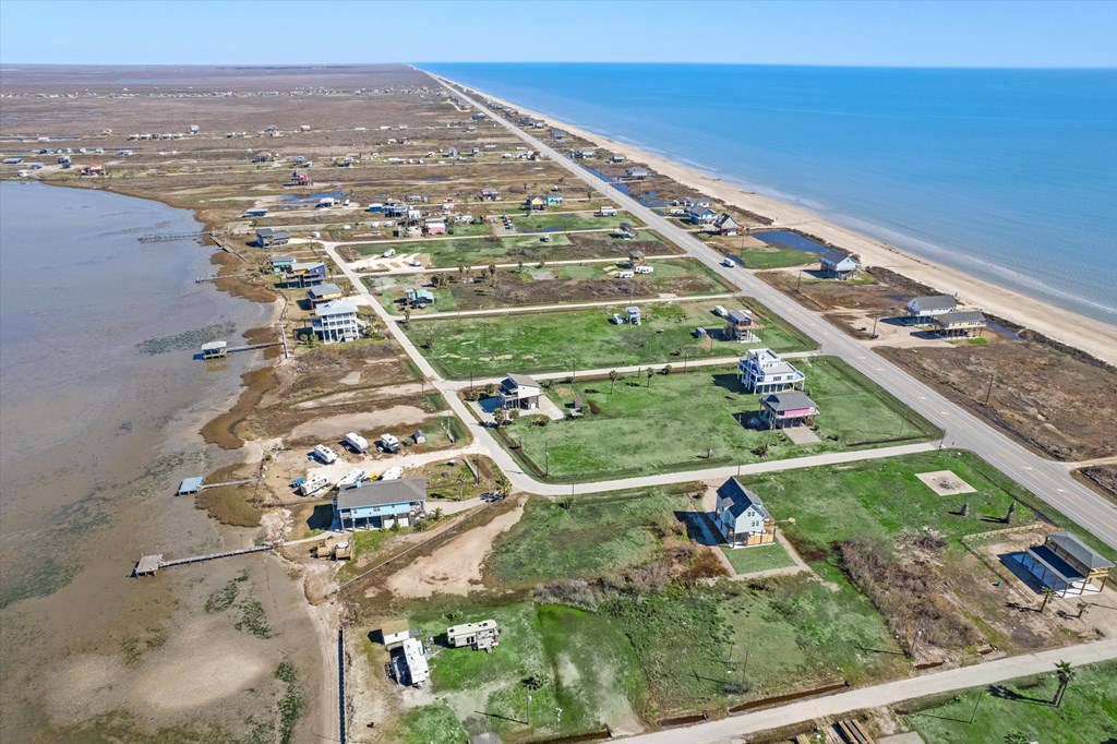 Rare opportunity to own a bayside lot on Bolivar Peninsula, perfectly situated with stunning beach and bay views. This unique property offers the best of both worlds with endless possibilities-whether you're dreaming of building your custom coastal home or looking for the perfect spot to park your RV for weekend getaways. With no restrictions you have the flexibility to design your space exactly how you want. Enjoy the serene setting, watch the barges go by and take in incredible sunsets over the gulf. This lot provides easy access to fishing, boating and beachcombing, located only 1.7 miles from the newly finished Lauderdale Boat Ramp. Plus three adjoining lots are available for purchase, offering a total of .6 acre and a great development opportunity. A buyout lot behind the property ensures added privacy.