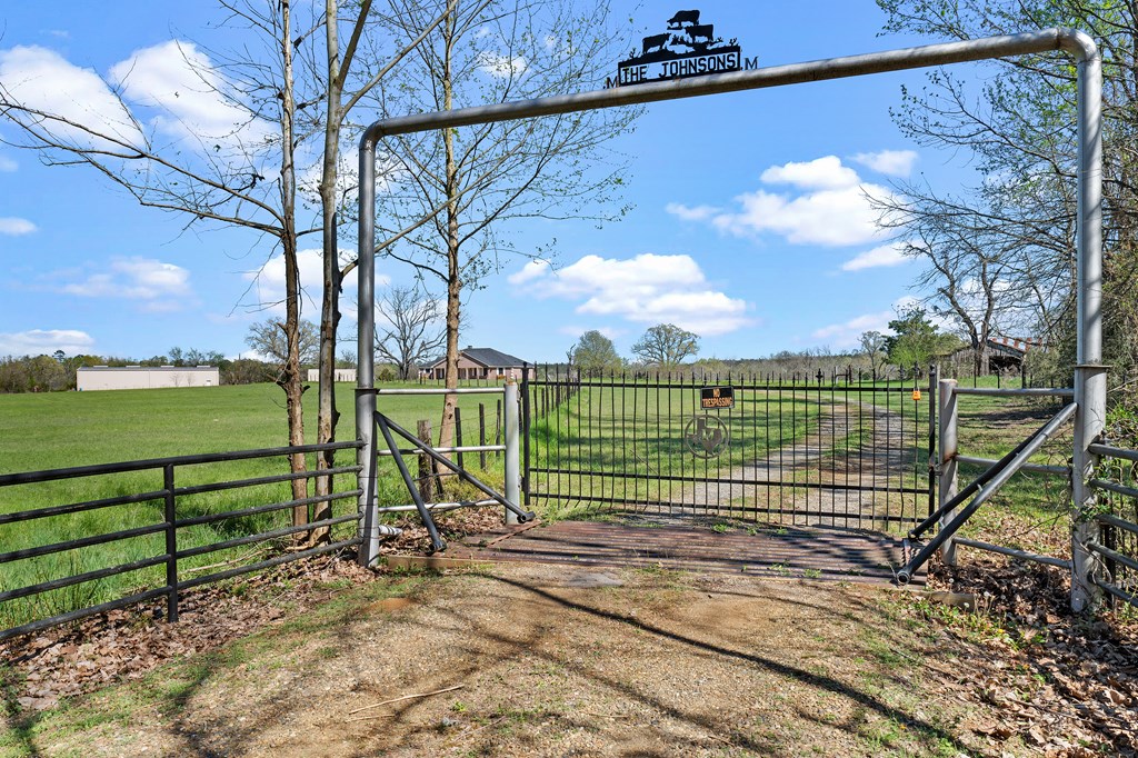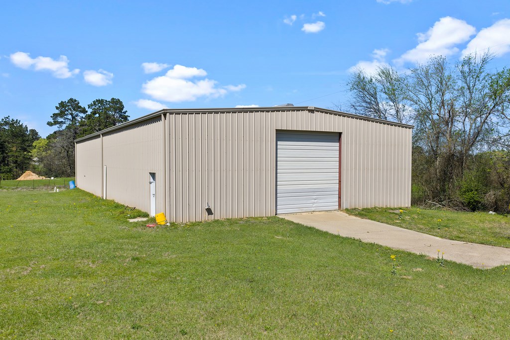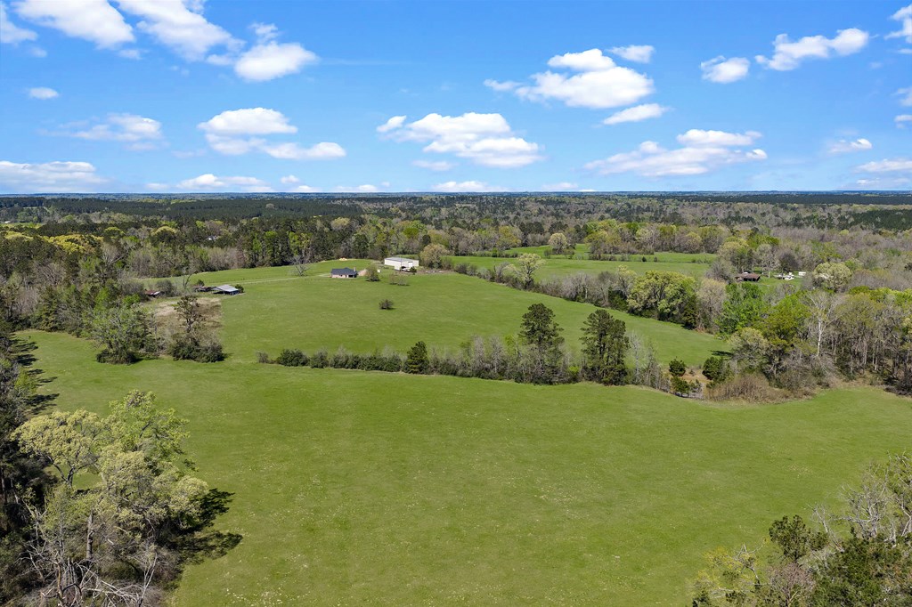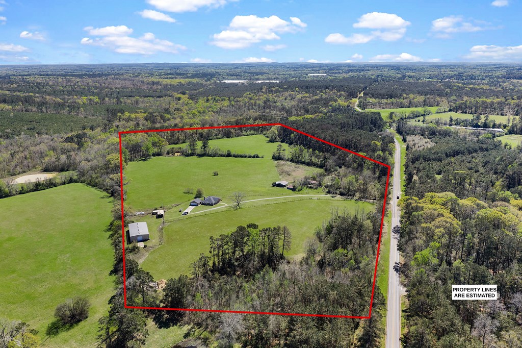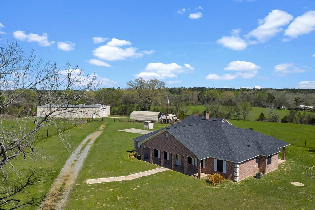 Welcome to your East Texas ranch! This property consists of 53 fenced and cross fenced acres that offer a mix of pasture and timber, a pond, a 7,500 sq ft shop (150x50), an RV cover, a 2,550 sq ft 3 bedroom 2.5 bath home with a large kitchen that has tons of cabinet and counter space, a covered back patio overlooking the pasture. NEW ROOF March 2026, new survey 2026. This property has no restrictions and is located within 4 miles of Lake Murvaul and sits on both the Shelby and Panola County lines.