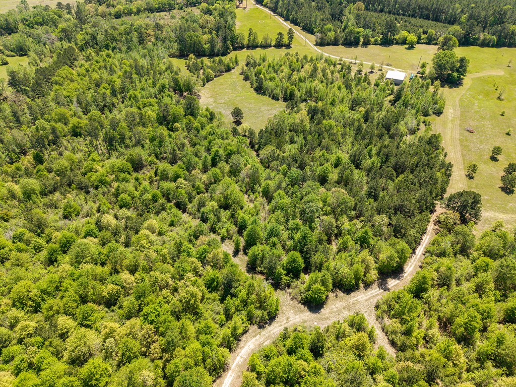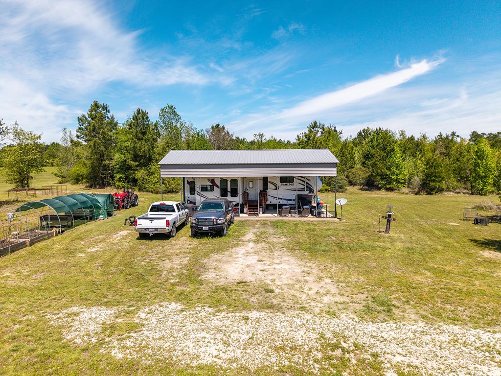 64.19 acres of prime East Texas farm & ranch land offering a great mix of wooded acreage and open pasture, ideal for recreation, hunting, or a future homesite. Property is partially barbed wire fenced and surrounded by large timber tracts, creating excellent habitat for abundant wildlife—deer, hogs, and more. Improvements include a well-prepared homesite with full RV hookups (water, septic, electricity) and satellite internet in place. A 30'x40' shop with roll-up doors provides ample storage and workspace. Additionally, there is a 28'x40' metal RV cover, both situated on a concrete slab. The property features a stocked pond with catfish, along with an established road and trail system throughout for easy access. Gravel driveway leads to the RV site. Ideal for a private weekend retreat, hunting property, or future homesite. Quiet location with excellent seclusion while still accessible. Shown by appointment only.
