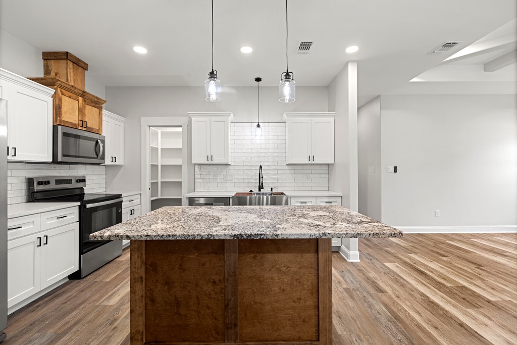 Brand new construction townhome on Burk Street in Nacogdoches offering modern style and functional design. This 4-bedroom, 2-bath home features granite countertops, vinyl plank and tile flooring, tiled showers, and sleek modern appliances and finishes throughout. The open-concept living and kitchen area creates the perfect space for entertaining, complete with a built-in pantry and spacious laundry room for added convenience. Three bedrooms and two baths are located down the hall from the living area, while a generously sized fourth bedroom with closet and extra storage is situated upstairs above the garage ideal for a guest suite, home office, or flex space. Move-in ready with quality craftsmanship and thoughtful details throughout.