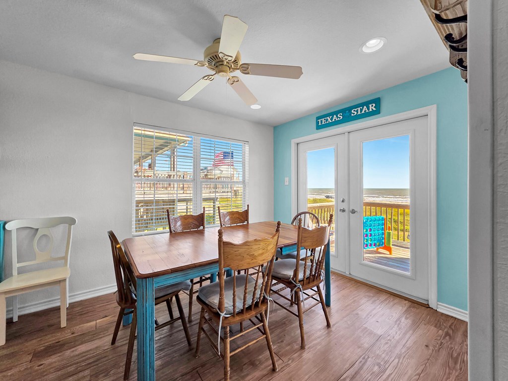 Welcome to, A Texas Star, Crystal Beach, Tx. perfect INCOME PRODUCING VRBO vacation getaway! This FULLY FURNISHED stunning 3-bedroom, 3-bathroom beachfront home is the perfect escape for families and groups, blending luxury and comfort. Located just steps from the sand, enjoy breathtaking ocean views and an expansive outdoor entertainment area. This gorgeous home is centrally located near the best that Crystal Beach has to offer making it an easy access not only to the beach (literally steps away!) but also local stores and restaurants. This property comes turn key ready to rent being fully furnished with all new appliances less than a year old and one of a kind beach decor throughout! Enjoy the best unobstructed beach views on the peninsula from your private two story front porch with plenty of seating from Chairs by Bill. The owners have also recently installed a brand new fence encasing the perimeter of the property so it is very pet friendly!
