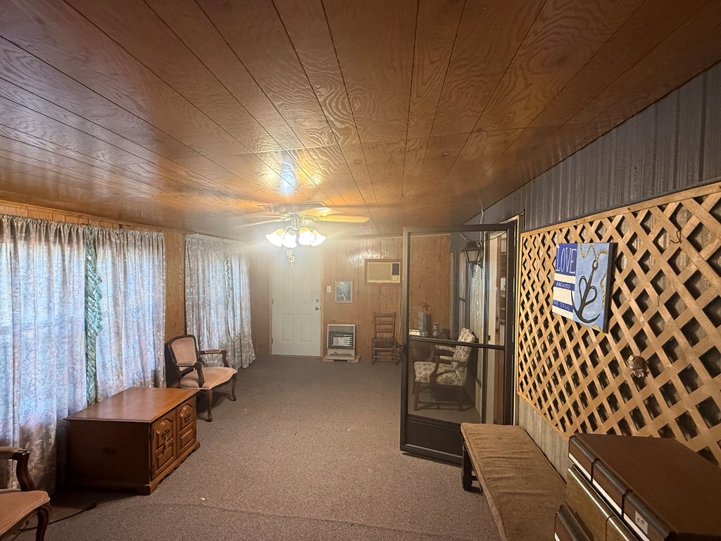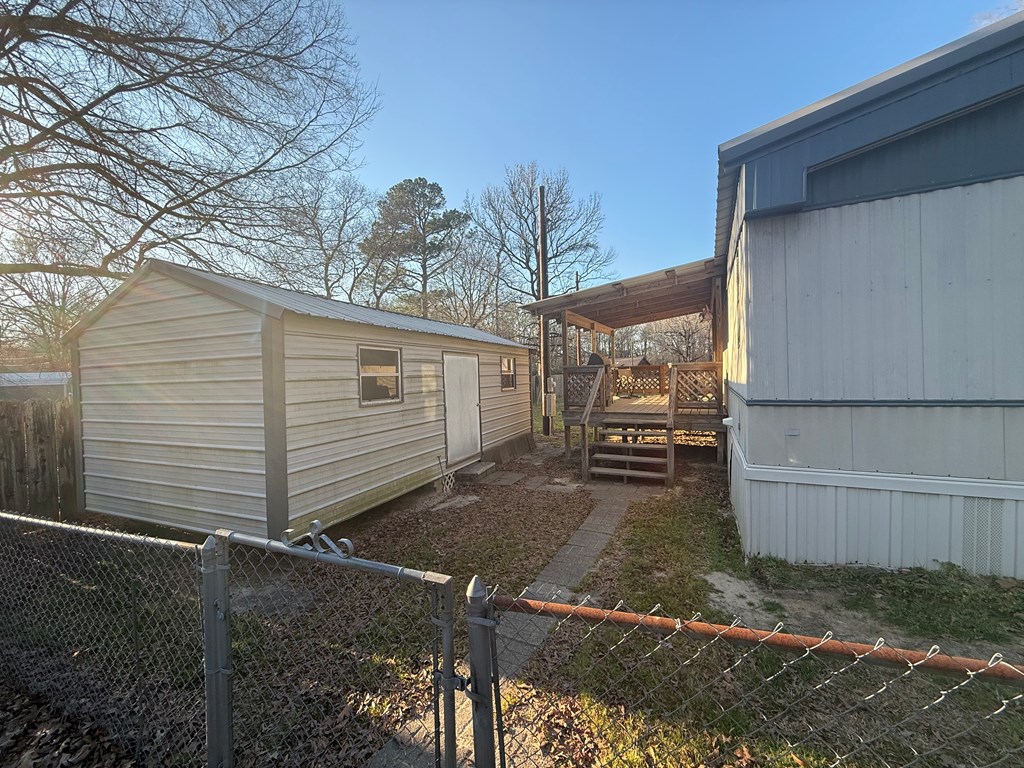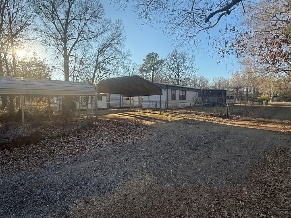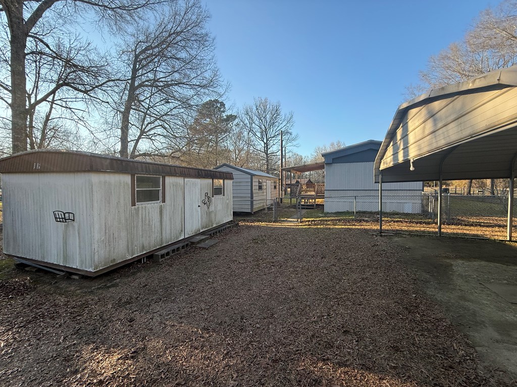This charming 1996 mobile home in Joaquin, Texas, offers 2 bedrooms and 2 bathrooms within 1,216 square feet. A standout feature is the 240 square foot finished room at the front of the house, perfect for a sunroom or office. The home sits on approximately 1.09 acres, with a covered back porch, fenced-in yard, and an expansive green lawn. Additional amenities include two outbuildings and two standalone carports. Plus, you're just a few miles from the boat ramp at the Sabine River, making it ideal for outdoor enthusiasts. Don't miss this versatile and spacious property!