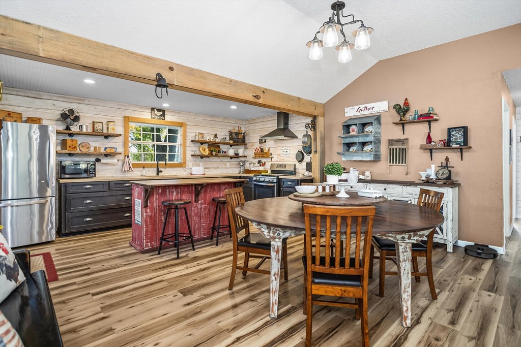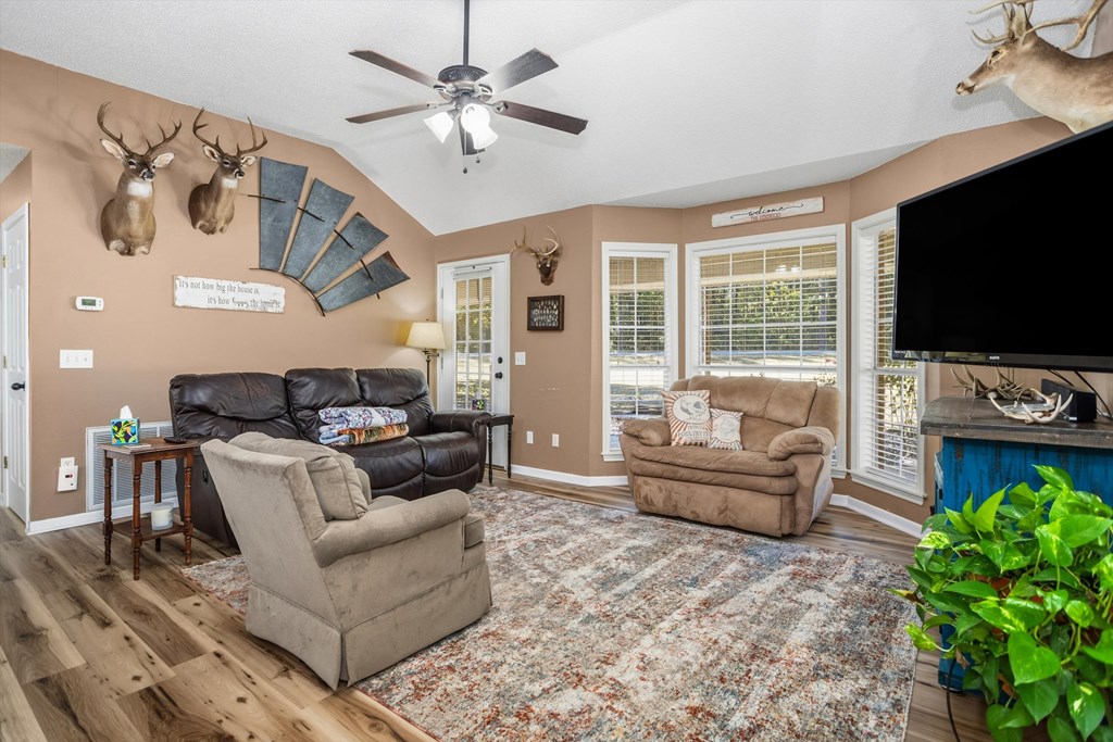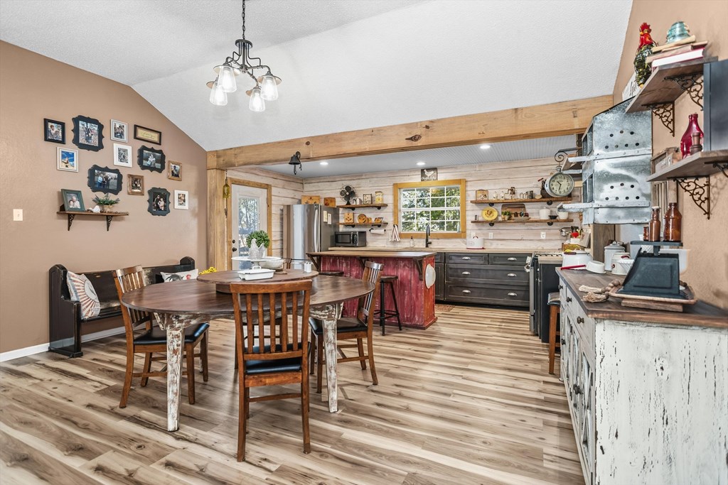 This beautiful two bedroom, one and one-half bath brick home is perfectly situated on 2.82-acres. The lawn is well maintained with mature trees, a garden area, a ditch lily bed that is gorgeous when in bloom, and asphalt driveways that have been topped with rock and sealed. The open concept living, dining, and kitchen welcome you as you enter the home. You will notice the new waterproof, vinyl plank flooring throughout majority of the home, making for easy cleanup. The kitchen has concrete countertops, floating shelves to display your favorite dishes, and ample cabinet space. The primary bedroom and guest bedroom share a hall bath with a large shower. There is a handy laundry with half bath that serves guests well. Outdoors, enjoy the covered entertainment area by 15'x30' above-ground pool. There is a 30'x40' shop with a studio apartment with a full bath. There is also a 20'x40' RV barn on a concrete slab with a 50-amp hook-up, water and sewage connection, and covered parking area.