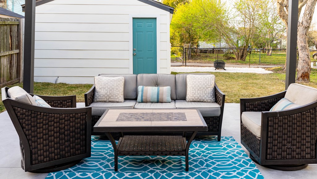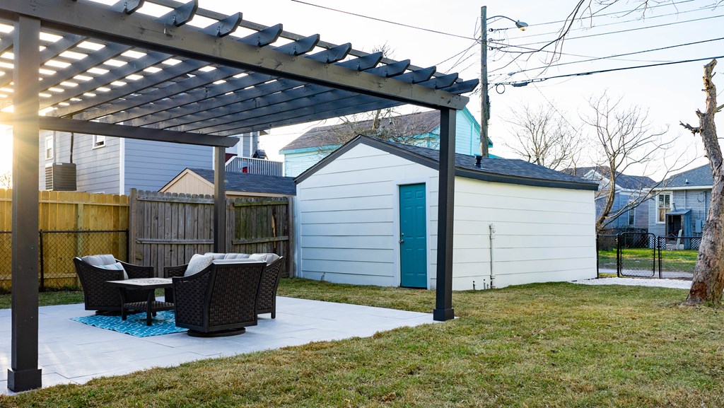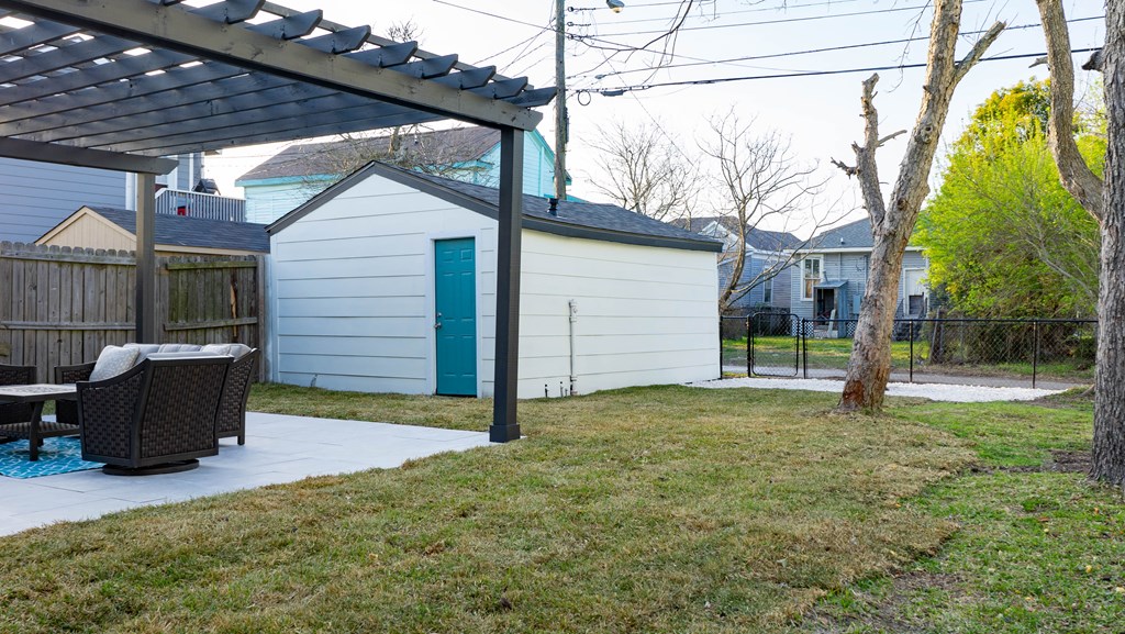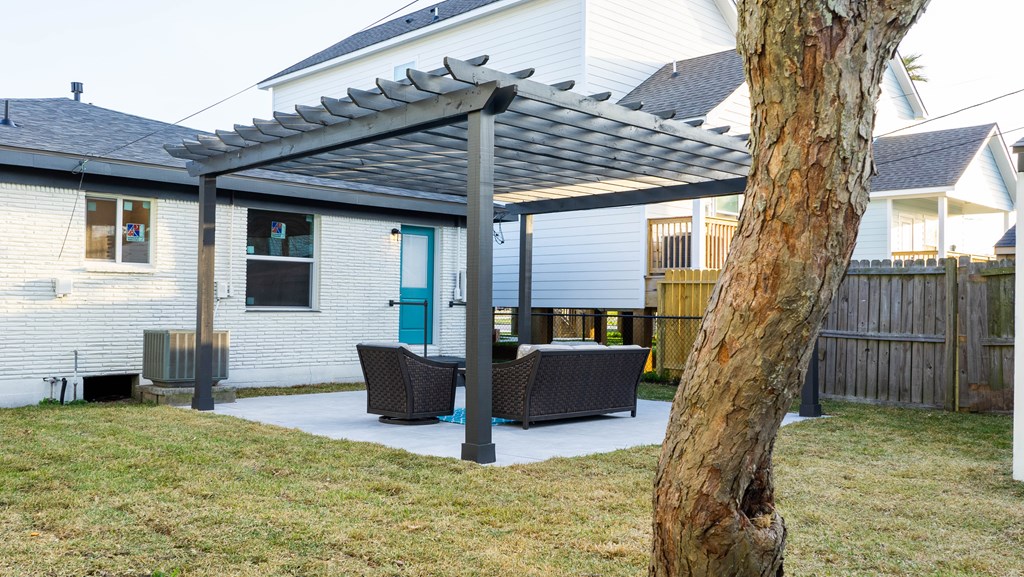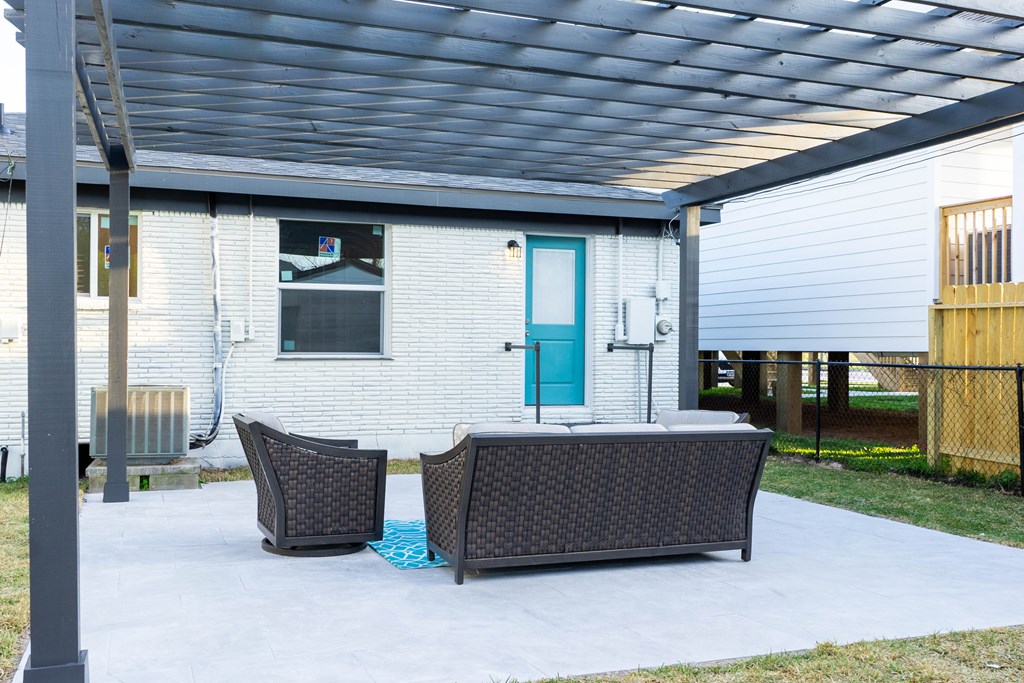 This property has been completely renovated from top to bottom, New roof, new everything, the pergola was added, furniture goes with it. inside features all new appliances Blue Pearl countertops, barn door entrance to the master bath, double pane windows. Outside features include an oversized lot, mature pecan trees, chain link fence.