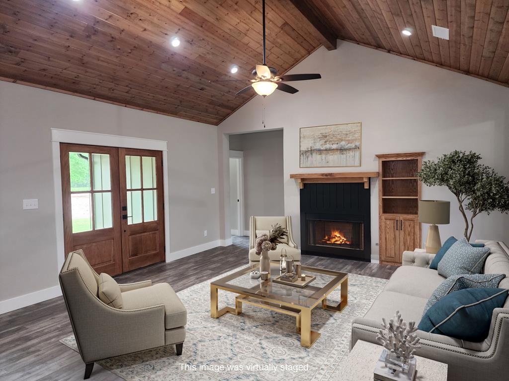 NEW CONSTRUCTION on almost 2 acres! Just minutes to beautiful Lake Sam Rayburn, this gorgeous custom home has 2,080 sq ft with 4 bedrooms and 3.5 baths. The main living features a wood burning fireplace & vaulted ceiling with custom bookshelves. The master suite has a special tray ceiling, a large walk-in closet, double vanities and a separate tub & shower. The kitchen has gorgeous granite countertops, a gas range & stainless dishwasher plus a beautiful island! The pantry, laundry room & half bath are perfectly placed inside near the 2 car attached garage. Builder customizations are negotiable! Acreage inculdes an existing concrete pad for a shop. Aerobic septic & well. This property is restricted to protect home values & neighborhood quality. Outside the city limits, so lower taxes PLUS NO HOA FEE!
