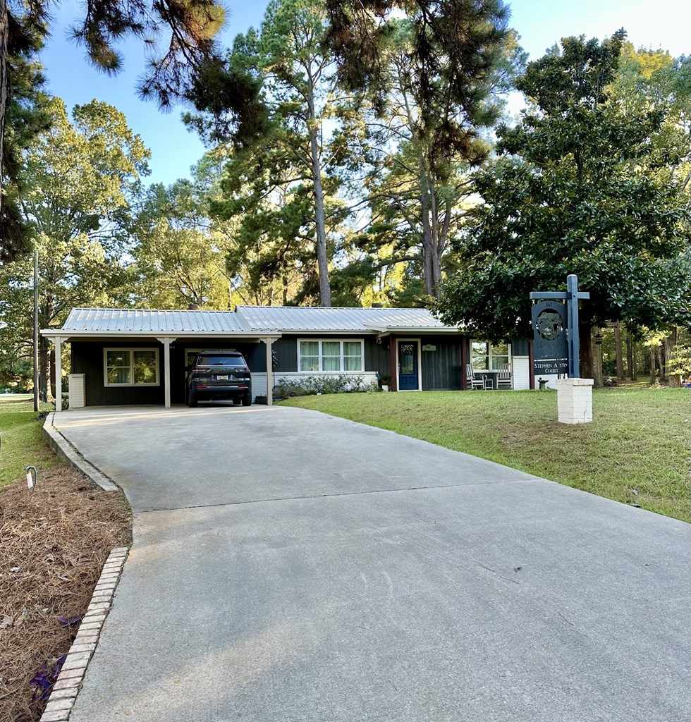 A beautiful water-view home on Toledo Bend Lake. THIS ONE CHECKS ALL THE BOXES!It is sitting on 1.497 acres, has a 30X40 metal shop plus12X20 lean, and it has a 12X30 a.c. “man cave” and a bath. The home is perfect and move in ready with 3 large bedrooms w/ walk-in closets and 2 baths, nice open kitchen and living. Home has new flooring and light fixtures, new paint inside and out. Lots of windows for beautiful views. Cypress outdoor cooking area and w/ covered patio complete with a large screen TV. located in historic “Old Sabine Town” A homes only subdivision with paved streets a private boat ramp, and swimming area. All this and more more!! Across the lake from Cypress Bend Golf Resort.