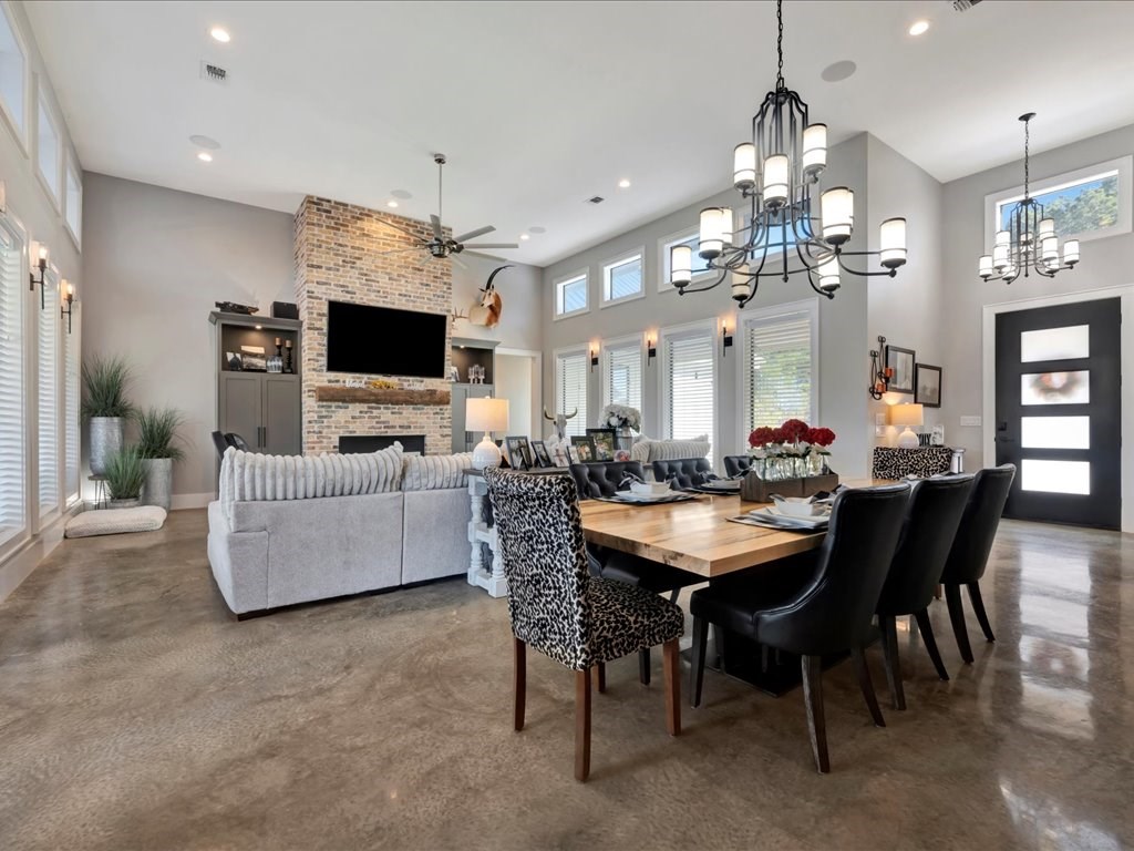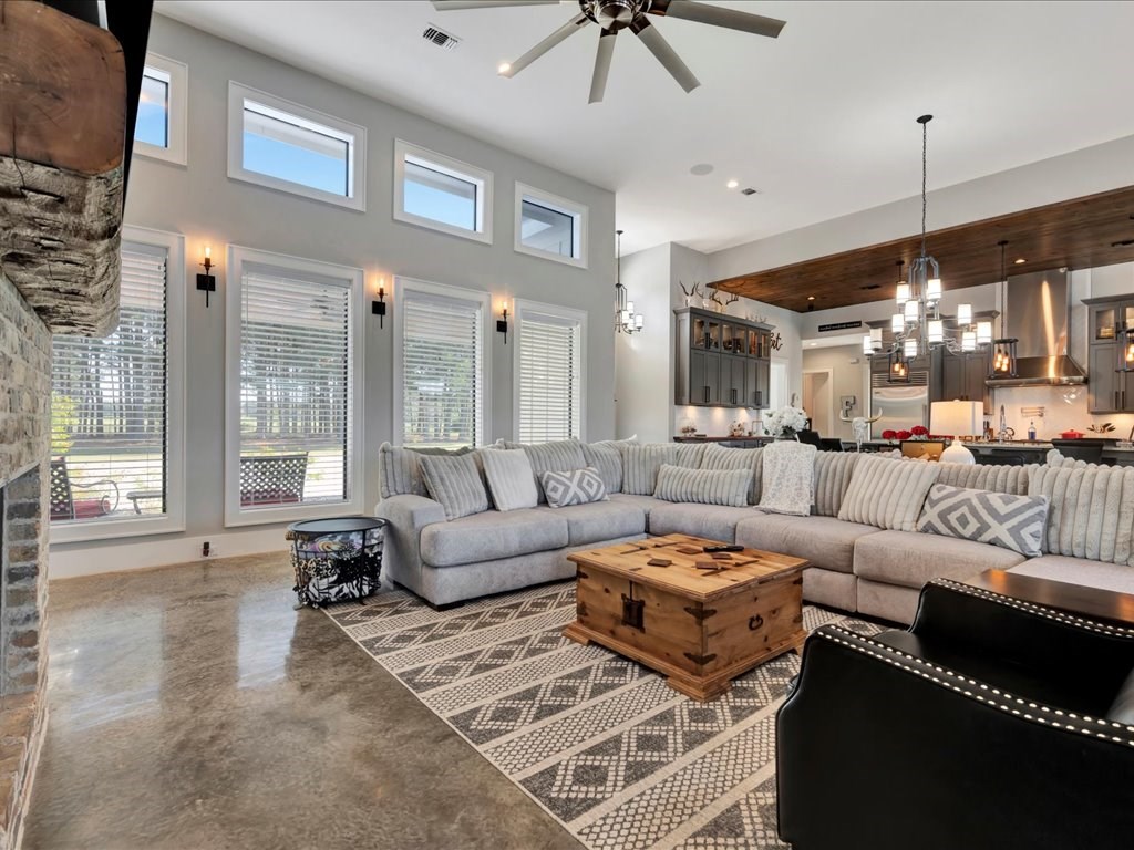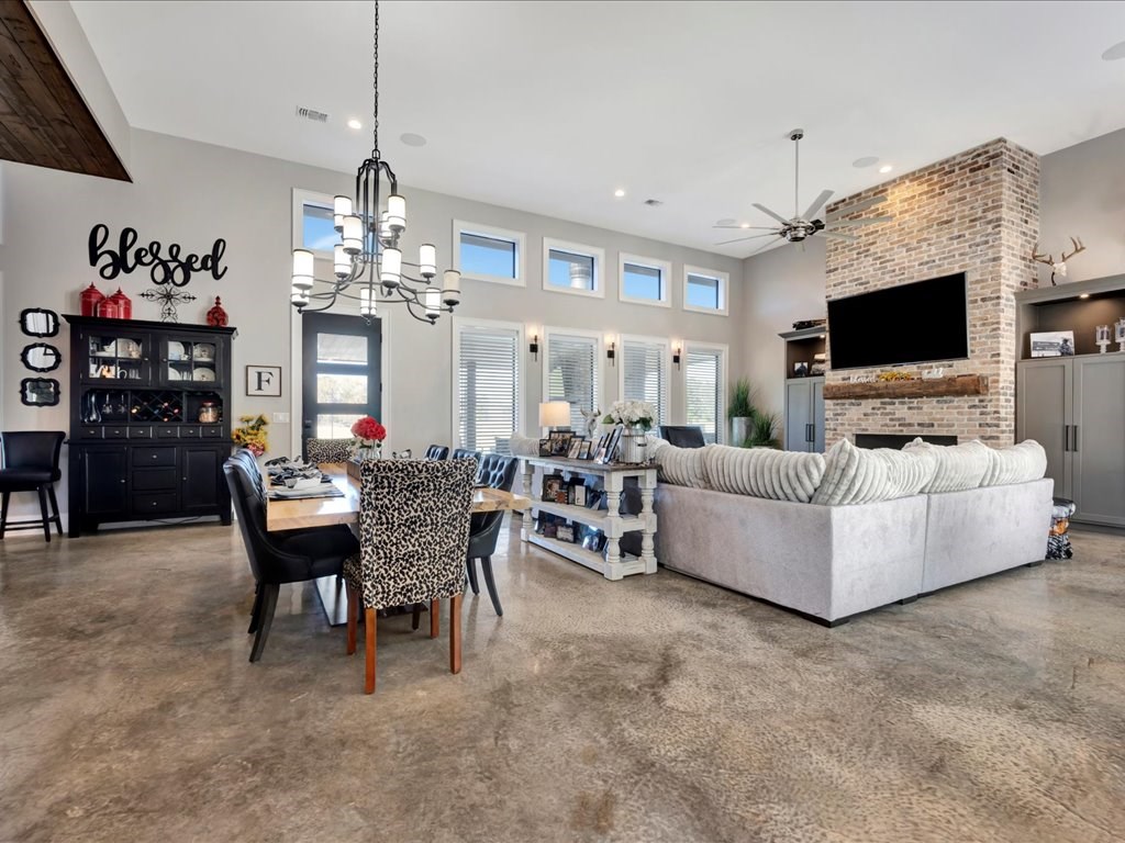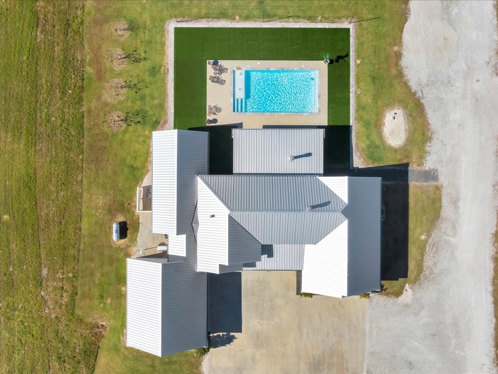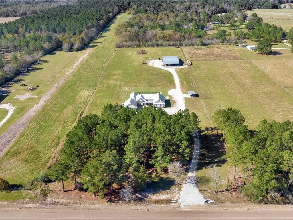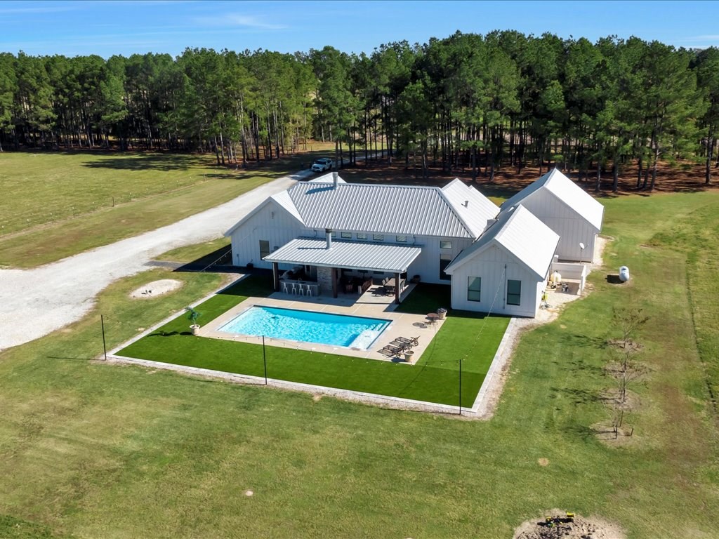 Welcome to your dream home, a custom-built masterpiece offering luxury, space, and serene country living. This stunning 4-bedroom, 4-full-bath, and 2-half-bath residence spans 3,200 square feet of meticulously designed living space, set on 7 private acres just outside the city limits. Step inside to find an open floor plan that seamlessly combines elegance and functionality. The kitchen boasts plenty of cabinet space, ideal for both everyday use and entertaining. A large laundry room adds convenience, while the primary suite features a luxury closet designed to accommodate and impress. Outside, a resort-style gunite pool awaits, surrounded by sleek and low-maintenance Astroturf. An outdoor kitchen and a bathroom provide everything you need to host gatherings or simply relax in style. The oversized two-car garage offers ample storage and versatility, while a massive 3,000-square-foot concrete-floored barn enhances the property's appeal for hobbies, storage, or business needs.