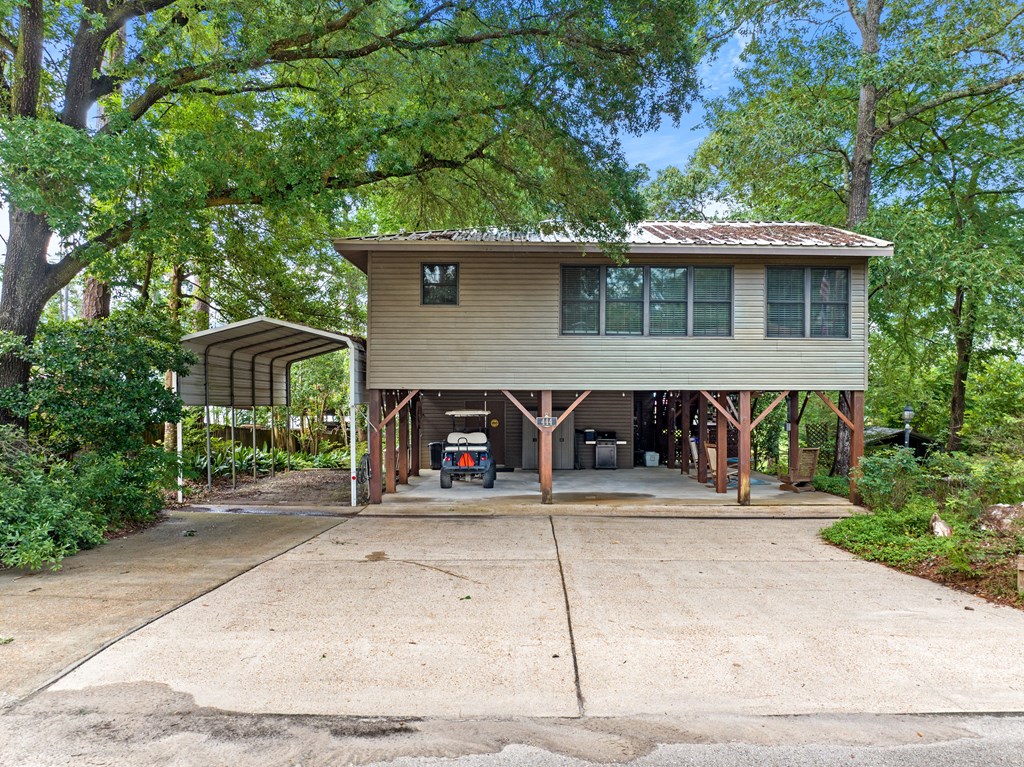 Open waterfront with sandy beach. Charming well maintained lake house in Westwood Subdivision. Beautiful waterfront with sandy beach steps from the back door and boat ramp just down the road. 2 bed 2 bath upstairs with 3rd bedroom/bath, game room/4th bedroom downstairs. Den and sunroom open to kitchen. Great for family fun. 2 waterfront lots in Westwood Subdivision, giving room to spread out and have extra parking, 5 car carport, deck off master overlooking the lake. Outbuildings and RV cover.