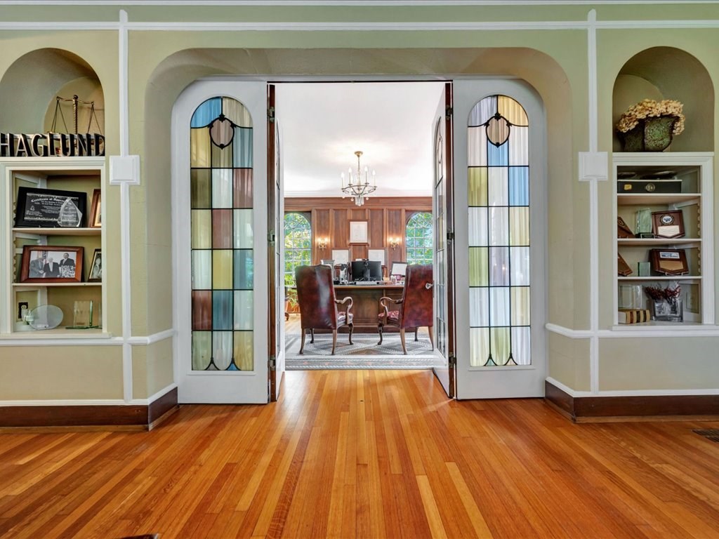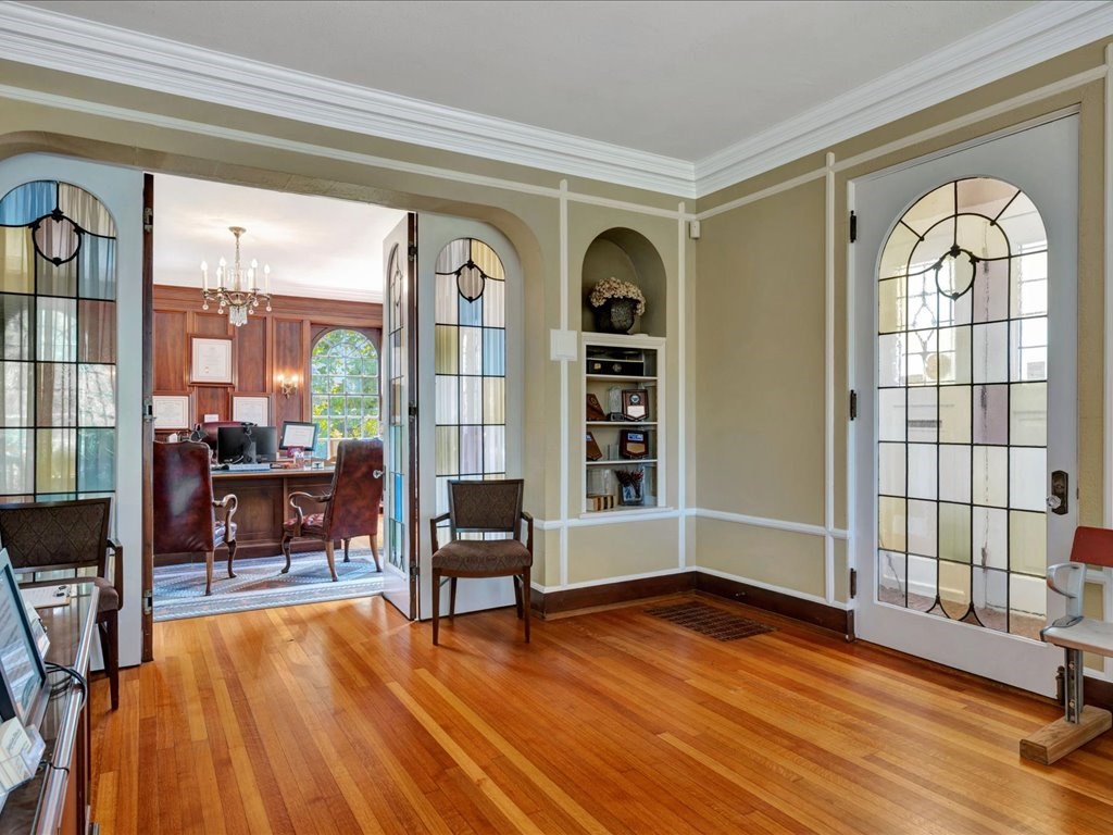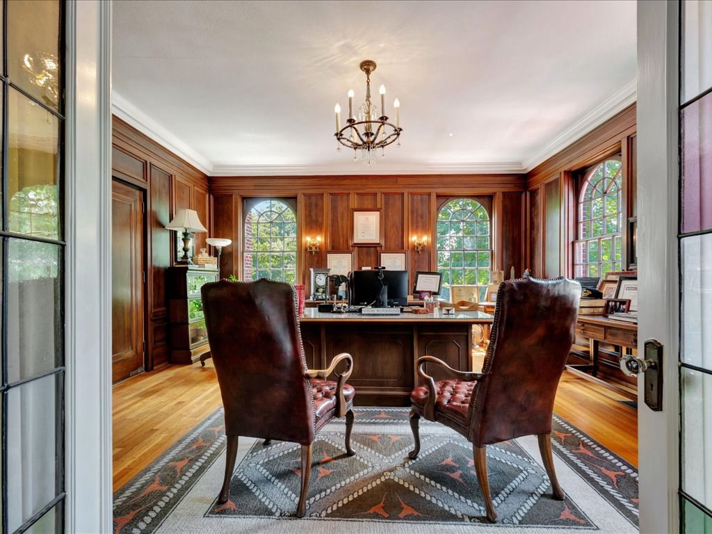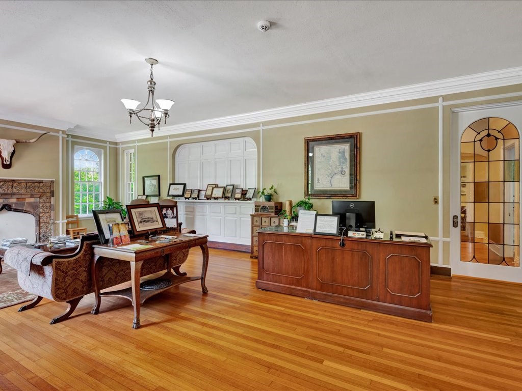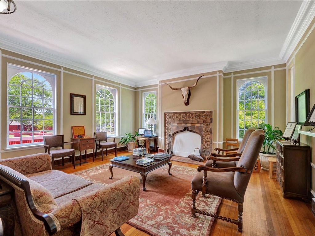 Beautiful Historic Property Sitting on Landscaped 1.31 Acre Corner Lot! This stunning two-story historic building/house offers timeless character. It is currently serving as a professional office but was a residence at one time and could be converted back to one with some changes. Features original architectural details, soaring ceilings, working fireplace, gorgeous stained-glass doors and windows. A separate Carriage house adds a two-car garage along with a bedroom, bath, office space which is ideal for guests or a rental. Window unit in Carriage House. The expansive lot has mature shade trees with plenty of room for entertaining. This property offers endless possibilities and is a delight to view!