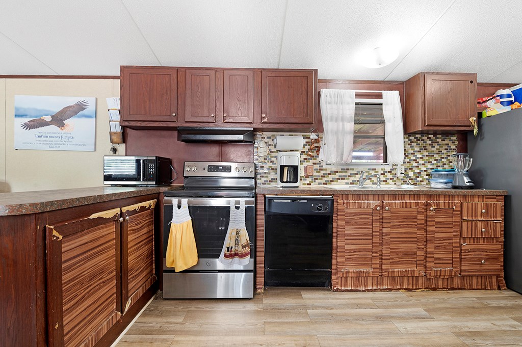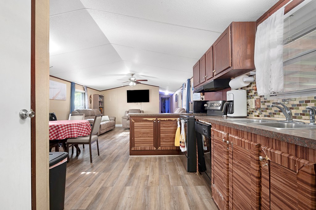 Charming 3 bed, 2 bath manufactured home on a spacious 0.34-acre lot in Cleveland, TX. Features an open living area, functional kitchen, and shaded yard perfect for relaxing or entertaining. The property includes an 8x8 storage shed and is beautifully surrounded by mature cactus, grapefruit, peach, pear, fig, lime, and grape plants. Enjoy small-town living with quick access to I-69, local parks, schools, shopping, and dining. A great opportunity for first-time buyers or investors in a growing area.