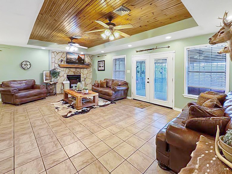 A private slice of paradise in the heart of Rayburn Country and just minutes to the lake! Tucked behind a beautiful electric gate, this stunning 5bd, 2ba home sits on 7.4531 serene acres overlooking a majestic pond. The home features a spacious open floor plan that has a cozy fireplace, tray ceiling, sunroom, and formal dining room. The kitchen has granite countertops, a breakfast bar, ample storage, and a breakfast area for casual dining. Outside, you'll find a whole house Generac Generator, propane tank, an attached carport and a 1,500 sq ft shop equipped with a large bay, ample storage for farm equipment and lake toys, and a covered entertainment area—ideal for outdoor get-togethers. Inside the shop are 2 additional bedrooms and a full bathroom, making it perfect for guests or a private retreat. Beside the home and shop is a unique greenhouse for your gardening dreams. The property is cross-fenced for livestock, with a section of high fencing designed for various types of game.