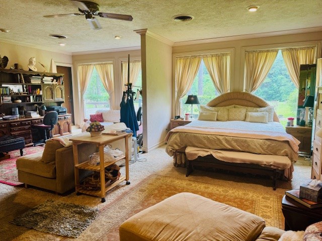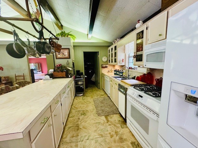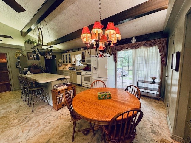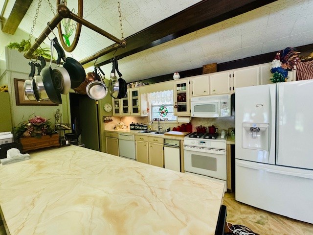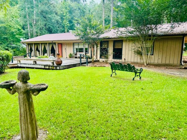 Private, Private, Private, secluded custom home on 4.48 + acres. 3/3 home 'tucked in the woods. Enjoy the peaceful ambience of living in the country. Home boasts open floor plan, kitchen with gas stove, lots of storage and large island. Living with vaulted beamed ceilings and fireplace, breakfast nook with built-in, oversized main bedroom with den and wet bar, bath with double vanity, tub and separate shower. 2nd bedroom has its own bath. Beautiful grounds and outbuildings.