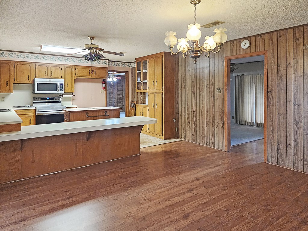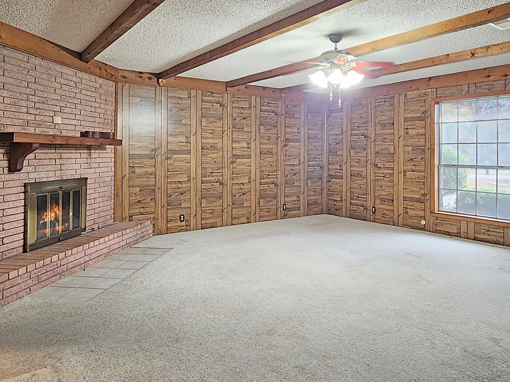 REDUCED! Charming 3-bedroom, 2-bath brick home situated on a spacious corner lot, complete with a workshop and ample covered parking. Inside, you'll find two generous living areas, a cozy gas log fireplace, and a large kitchen equipped with an island, breakfast bar, built-in microwave, dishwasher, and more. The primary suite offers two oversized walk-in closets, and the bathroom includes a walk-in tub for added comfort and accessibility. Enjoy the beautiful backyard views from the expansive sunroom that spans the rear of the home. This well-maintained property is move-in ready and waiting for its next family—schedule your showing today!