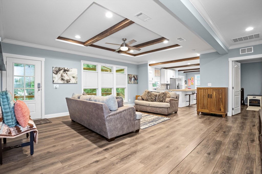 Experience the ultimate country lifestyle in this pristine 2022 manufactured home, beautifully situated on 11+ cleared acres perfect for horses, cattle, goats, or chickens. Designed with comfort and functionality in mind, this customized floorplan features 3 bedrooms, 2 baths, & spacious living areas. The home's well-appointed kitchen and open concept layout make it ideal for entertaining or relaxing while enjoying immaculate views of the surrounding landscape. Equestrians will delight in the 4-stall horse barn complete with a custom-built tack room, plus there's a dedicated barn/RV shed and a one-bay metal shop/garage to accommodate all your vehicles and equipment. When it's time to unwind, immerse yourself in your refreshing above-ground pool with expansive sundeck, an outdoor shower, and large front and back covered porches that overlook the property's impeccably maintained gardens & mature fruit trees. The expansive grounds are framed by dense woodlands, providing utmost privacy.