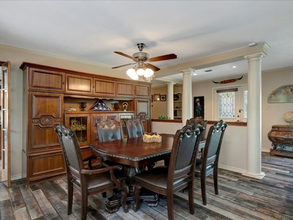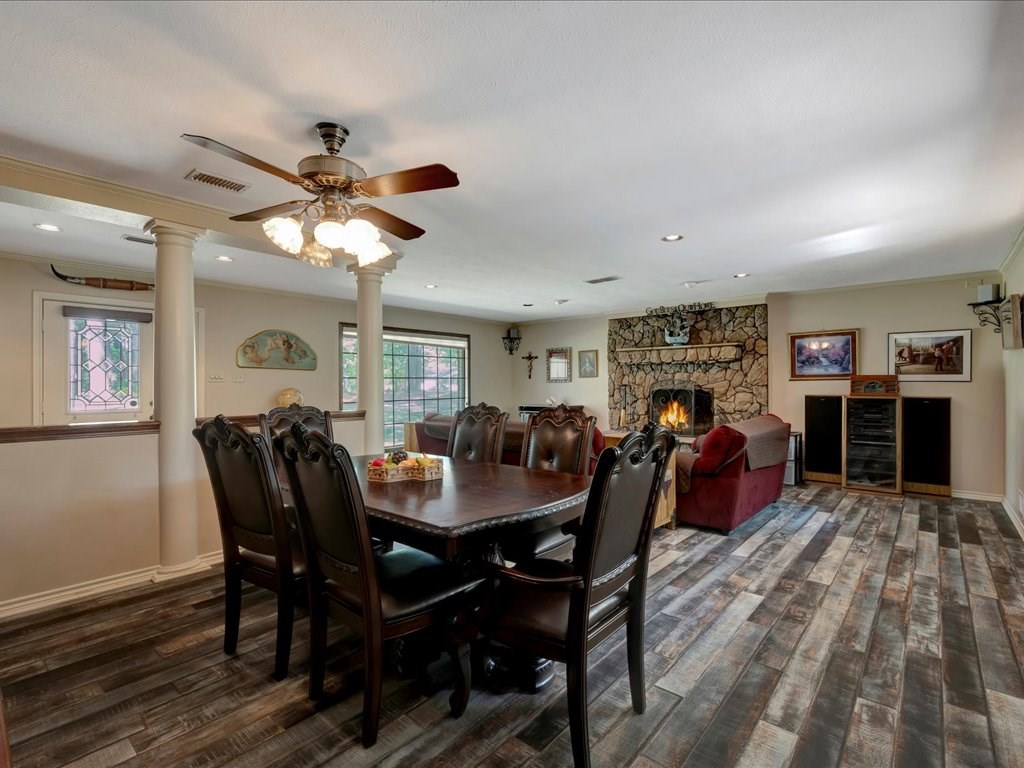 This charming 4-bedroom, 3 bath home offers the perfect blend of privacy and convenience, tucked into a wooded neighborhood just off Starr Ave. Designed for modern living, it features both an open-concept living/dining area and a spacious den/kitchen with built in office, creating ideal spaces for family gatherings. Situated on a large acreage lot, the home boasts a generous covered back patio along with an impressive four-car garage/shop. Add personal touches to make this quality-built home your own!