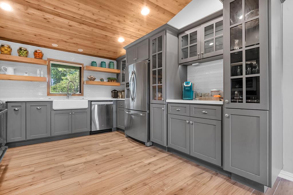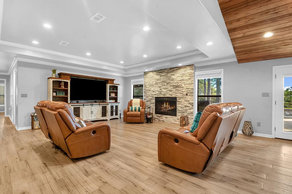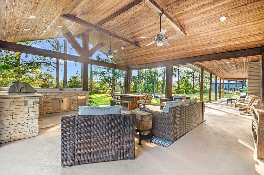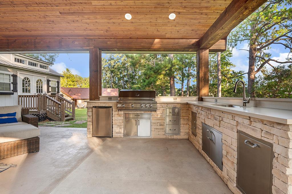 This beautifully renovated home offers spacious living with five bedrooms and three full baths, including two luxurious master suites. The kitchen is a chef's dream—fully updated with a gas stove, wine fridge, and an abundance of storage. Step outside to your own backyard oasis featuring an outdoor living area complete with a full kitchen, firepit, and room to entertain. There's even a screened-in fish cleaning station and a charming she-shed with A/C—perfect for hobbies, relaxation, or extra space. Need storage or a workshop? You'll love the massive 18' x 42' garage with epoxy floors and its own A/C. Plus, the home comes equipped with a whole-house generator for peace of mind. Located in the sought-after Forest Hills Subdivision, you'll enjoy access to the neighborhood swimming pool, tennis courts, and volleyball area. Just down the street from District 255 Marina, public boat ramps, and Umphrey Pavilion—and right around the corner from Rayburn Resort!