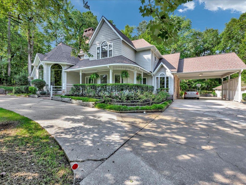 Step Into This Stunning Two Story Home! Formal living room is a true showpiece, featuring a warm fireplace, exquisite built-ins, copper ceiling. Formal dining room plus a breakfast room. Kitchen opens up to family room with another fireplace. Granite countertops with convenient coffee area and walk in pantry. Primary suite is spacious with his & hers sinks, jacuzzi tub and separate shower. 2 cedar lined closets. Small office or workout room. 2nd bedroom downstairs is perfect for nursery or elderly parent. Upstairs features an additional 2 bedrooms and large office/game room or bedroom. The backyard is your personal retreat with gazebo, inviting fire pit, very spacious deck/patio and whimsical playhouse perfect for relaxing or entertaining. Detached 3 car garage with porte cochere adds both function and style. Garage presently being used for a shop. Plenty of parking with circular drive and oversized driveway. This home combines comfort, craftsmanship, and character!