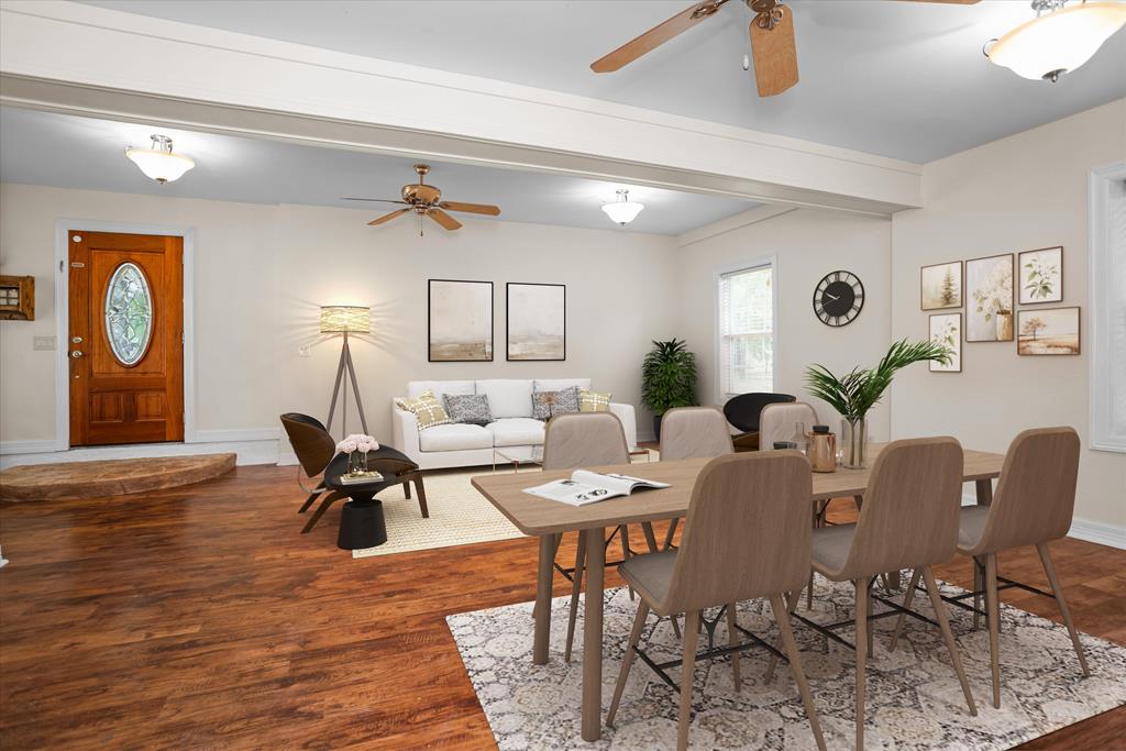 PRICE REDUCTION! Come tour this distinctive home on 1.218 acres offers a refreshing lifestyle with its generous interior and impressive outdoor amenities. The layout includes two living and two dining areas, with a wood-burning stove providing a comforting focal point. The true highlight is the outdoor haven, accessed conveniently from the attached carport to a covered patio with a built-in bar overlooking the refreshing vinyl-lined pool. A wire barrier and fencing provide enhanced security. The backyard also features a firepit patio, a workshop, and a chicken coop. A dedicated, multi-use space with two separate entrances is perfect for a home office or guest suite and includes a built-in safe. A 50-amp RV hookup under the carport and a gazebo with blooming grapevines further underscore its unique features. This is a truly distinctive home where the features and the land are the main event.