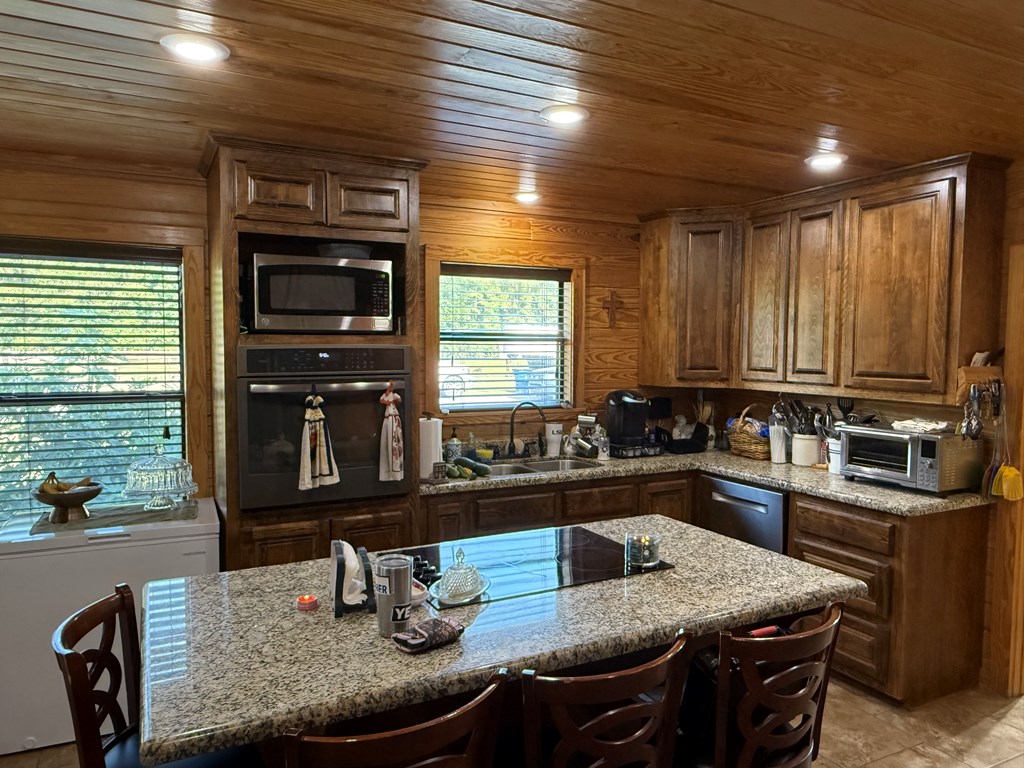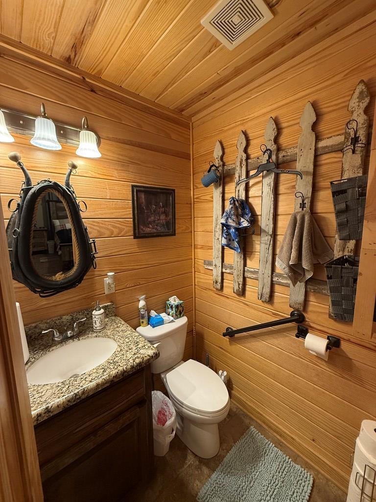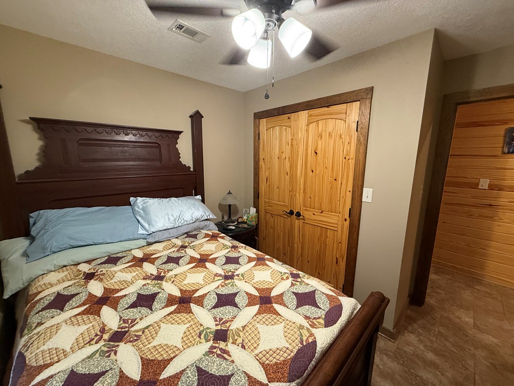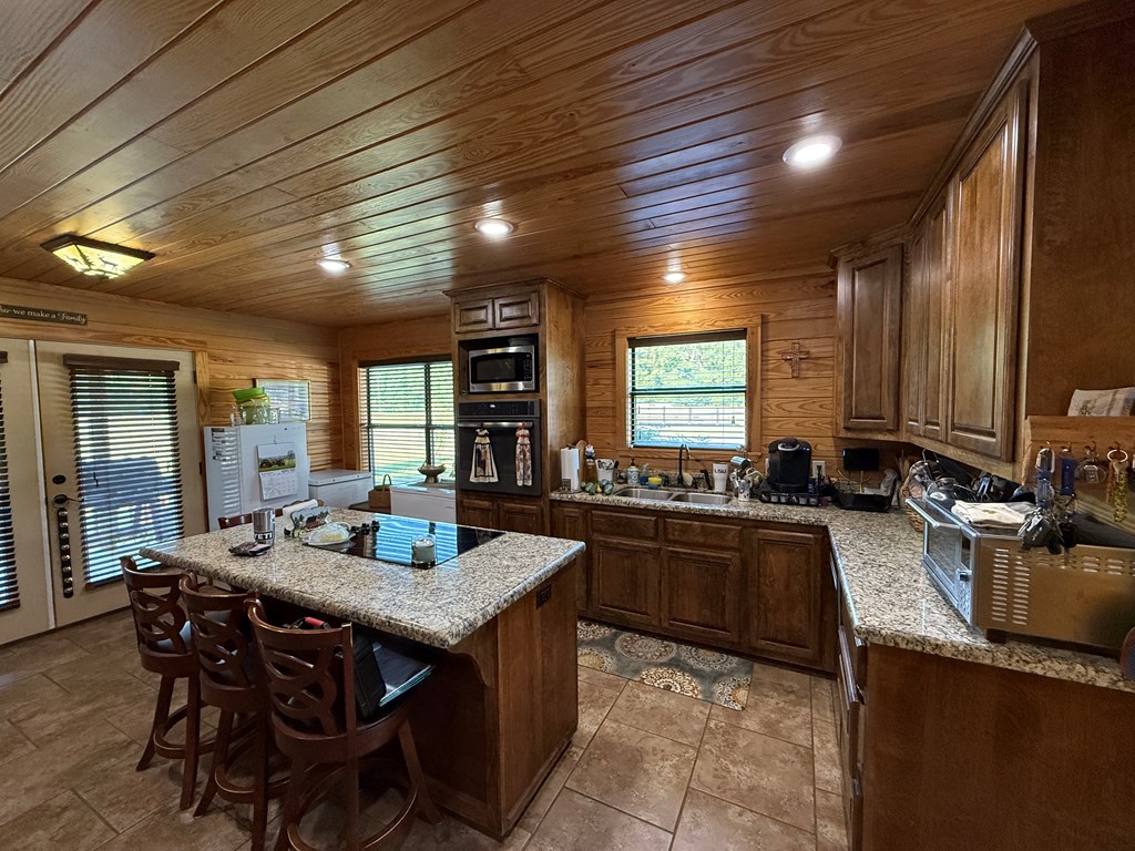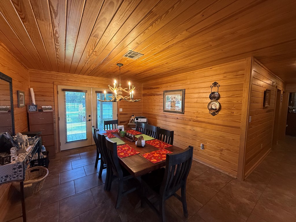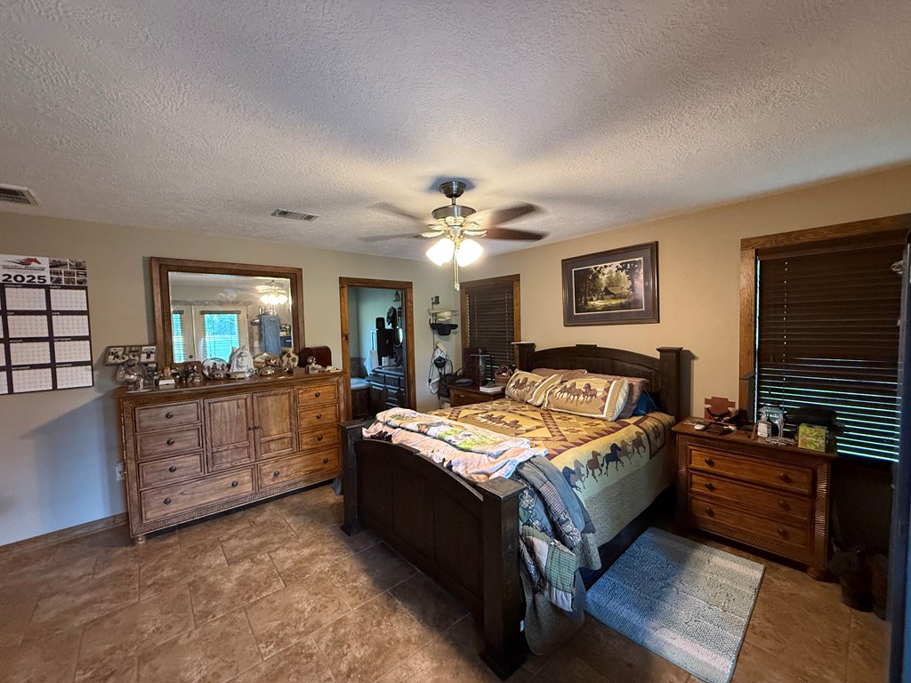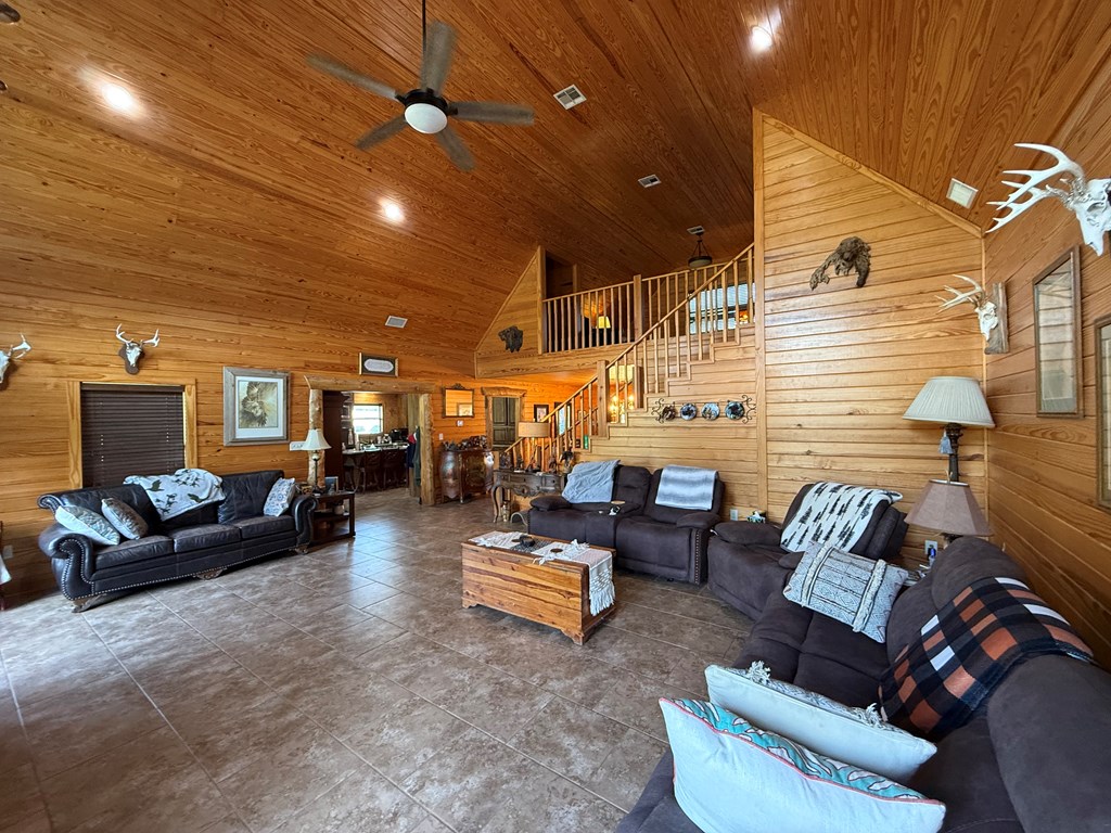 Rustic Lodge-Style Home on 10 Acres Quiet country living surrounded by towering pines, this 5-bedroom, 2.5-bath home exudes rustic charm & spacious comfort. The lodge-like design features a warm woodburning fireplace as the centerpiece, perfect for cozy gatherings.The master suite is a true retreat w/ French doors opening to a private porch—ideal for morning coffee while enjoying stunning sunrises & sunsets. A versatile room next door makes a perfect nursery or home office. Master bedroom & 2.5 baths are conveniently located downstairs, while upstairs offers a great secondary living area flanked by bedrooms.Outdoors, 10 fully cleared acres are fenced & cross-fenced—ready for livestock. The property includes a livestock barn w/electricity,storage for tractor & hay,two horse stalls w/ fans, chicken coops, loafing sheds, & sturdy goat fencing. There's also a secondary well & electric service for added flexibility. Metal roof, unrestricted use, & a peaceful setting complete this rare find!