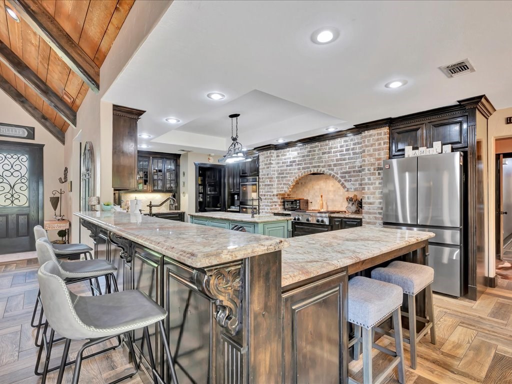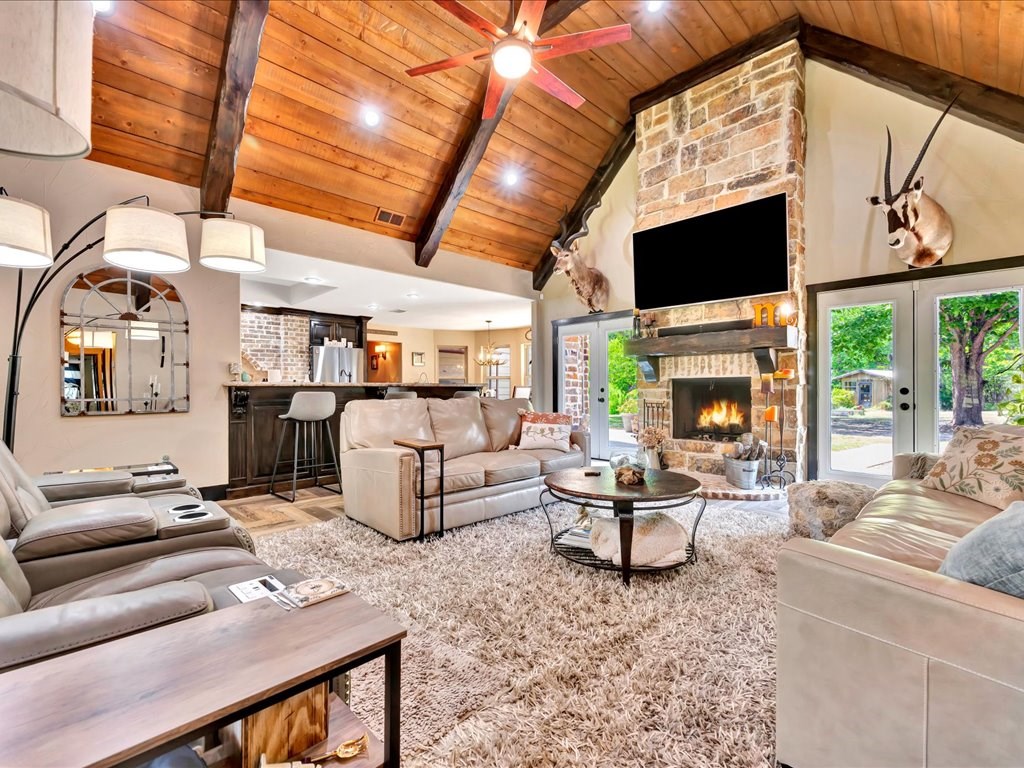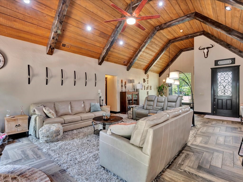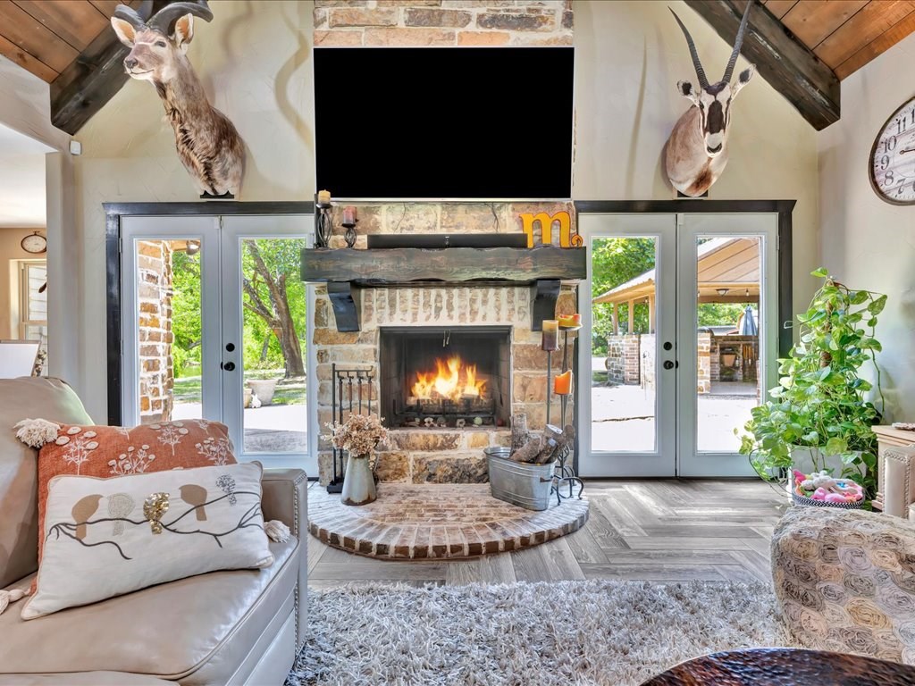 Elegant Country Estate with Two Homes on 4.85 Acres. Nestled on 4.85 picturesque acres, this exceptional estate seamlessly blends luxury, comfort, and convenience—just minutes from town. The custom 3,600 sq. ft. main residence offers four bedrooms and four bathrooms, along with thoughtfully designed spaces including a wine room, game room, and a versatile bonus room above the 2.5 car garage. A spacious 1,600 sq. ft. guest house adds three bedrooms and two bathrooms, providing ideal accommodations for extended family, guests, or multi-generational living. Resort-style amenities elevate the property, featuring a sparkling pool, pool house with bathroom and sauna, and an expansive outdoor kitchen with a built-in grill and ice maker—all perfect for entertaining. A covered patio invites year-round gatherings. Outdoors, enjoy a stocked pond, greenhouse, and an A/C insulated 30x50' shop with lean-to, offering both recreation and functionality.