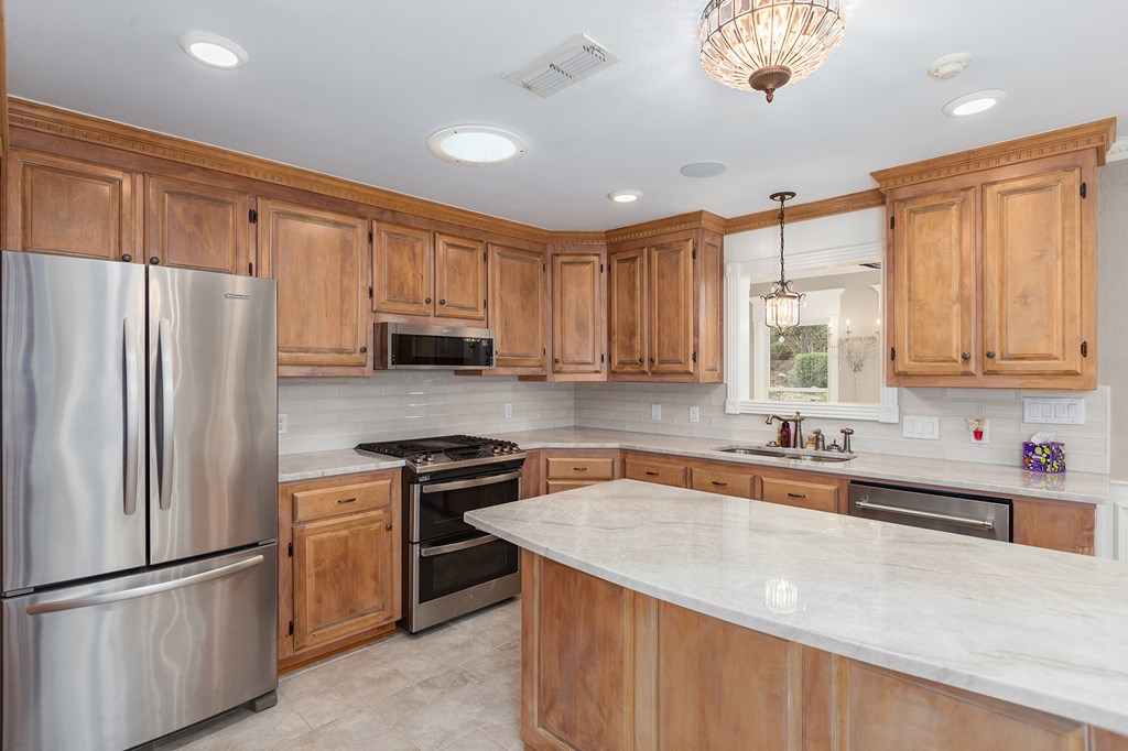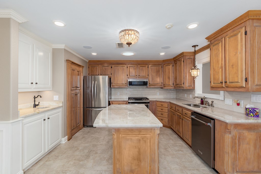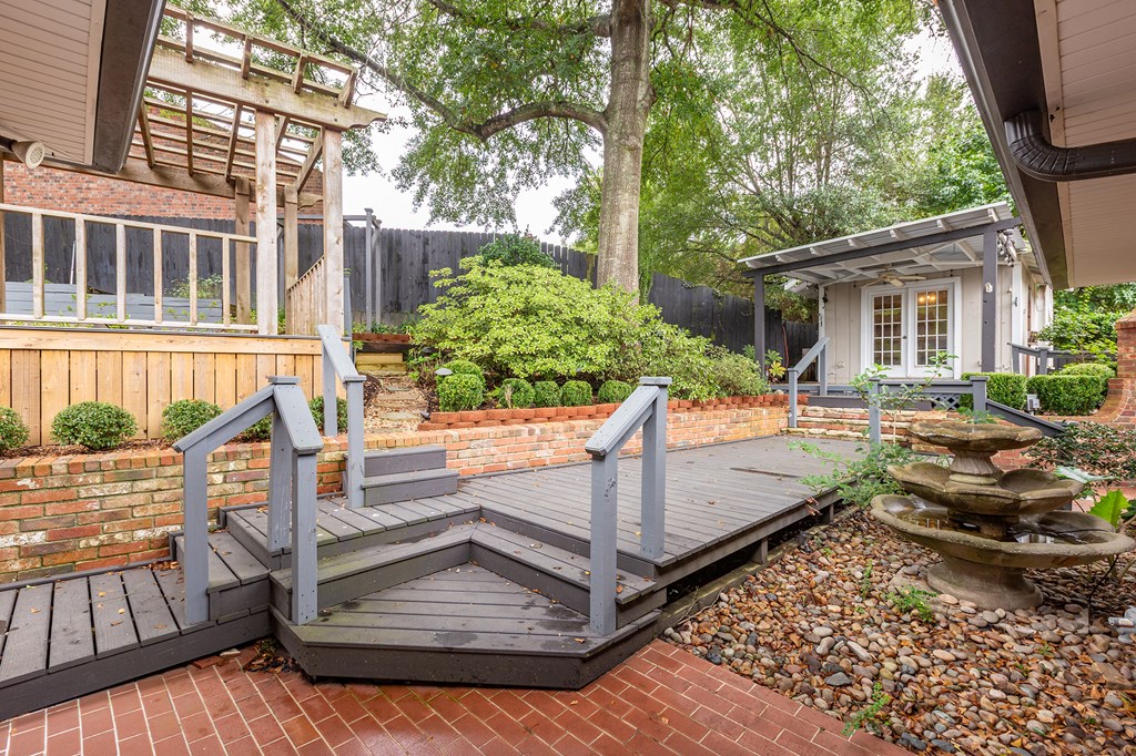 Beautifully designed 2-bedroom, 2.5-bath home packed with upgrades! Inside you'll find custom cabinetry throughout, a walk-in pantry, fireplace, whole-house sound system, and security cameras. Storage is a breeze with 3 attic spaces and an electric lift, plus peace of mind with a Generac generator. Outdoors is built for entertaining with a covered porch, pergola sitting area, outdoor fireplace, flagstone walkways, and landscaped yard with brick fencing and lighting. Extras include a she shed/man cave, tool sheds, single-car garage, 2 detached covered carports, sprinkler systems front & back, and auto insect fogger. This home truly combines comfort, security, and style—ready for you to move in and enjoy! Two refrigerators and a washer and dryer come with the property!