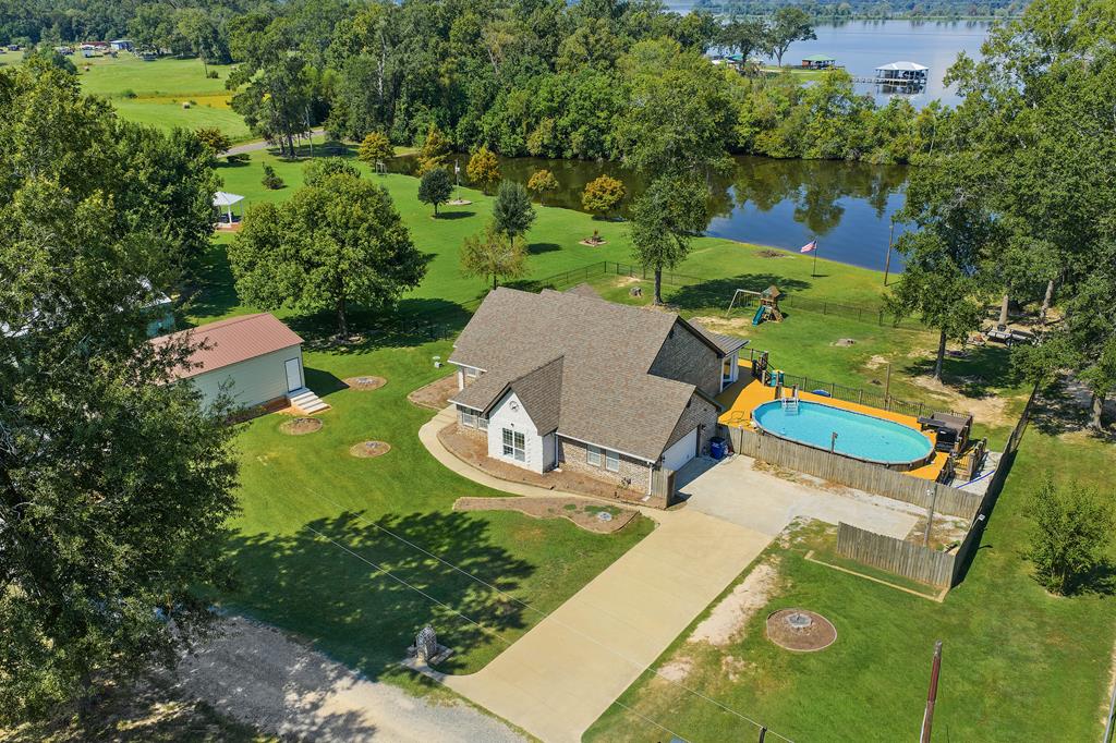 WATERFRONT on Lake Murvaul! Beautifully updated waterfront home on .66 deeded acres, remodeled in 2025 with fresh paint and new flooring throughout—completely move-in ready! Features include a new 24x40 insulated shop with two roll-up doors (perfect for boats or vehicles) and an over sized primary suite with space for an office or nursery. The climate-controlled sunroom is ideal for relaxing or entertaining year-round. Enjoy outdoor living with an above-ground pool and large deck, spacious back deck, fenced yard, and a 20x30 fishing pier—perfect for true lakefront living. Additional highlights include a tankless water heater, RV hookup, generator-ready plumbing, 2-car garage with attic storage, and an approx. 5-year-old roof. NO HOA (only $100/year pier fee to lake board).