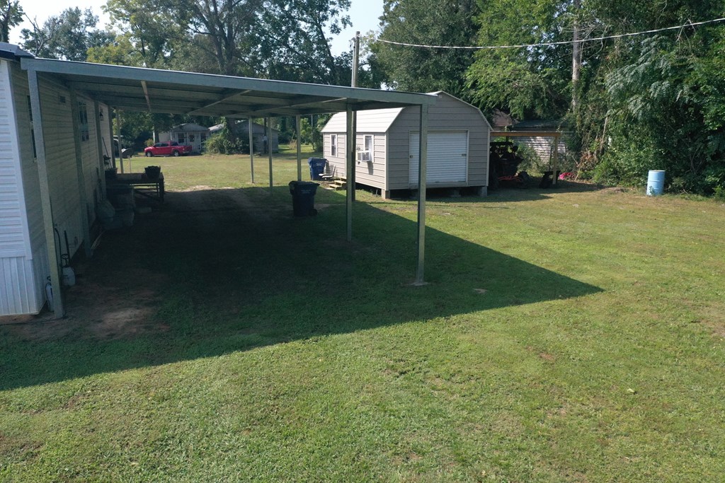 This like-new 3 bedroom, 2 bath home sits on just under an acre—cleared, level, and ready for your forever homeplace. You'll love the super convenient location just one block off Hwy 96, where you own half the city block, giving you tons of space for kids, pets, projects, and more! The functional split-bedroom design and open-concept layout make everyday living and entertaining a breeze. Enjoy magazine-worthy kitchen finishes, spacious bedrooms and baths, and an inviting flow throughout, with cozy electric fireplace. Outside, a metal carport provides covered parking and storage, plus a climate-controlled storage building adds even more convenience. The front porch is perfect for relaxing with coffee, dining outdoors, or making memories. With city utilities, maintenance is minimal, leaving more time for you to enjoy home. Don't miss this rare find—move-in ready and waiting for your family!