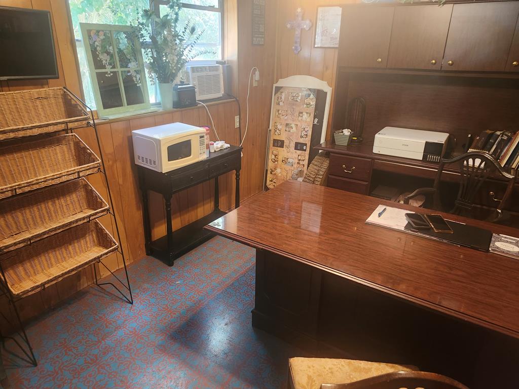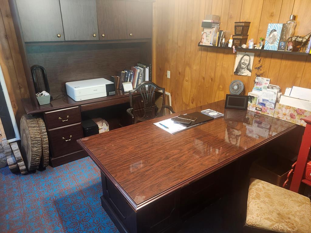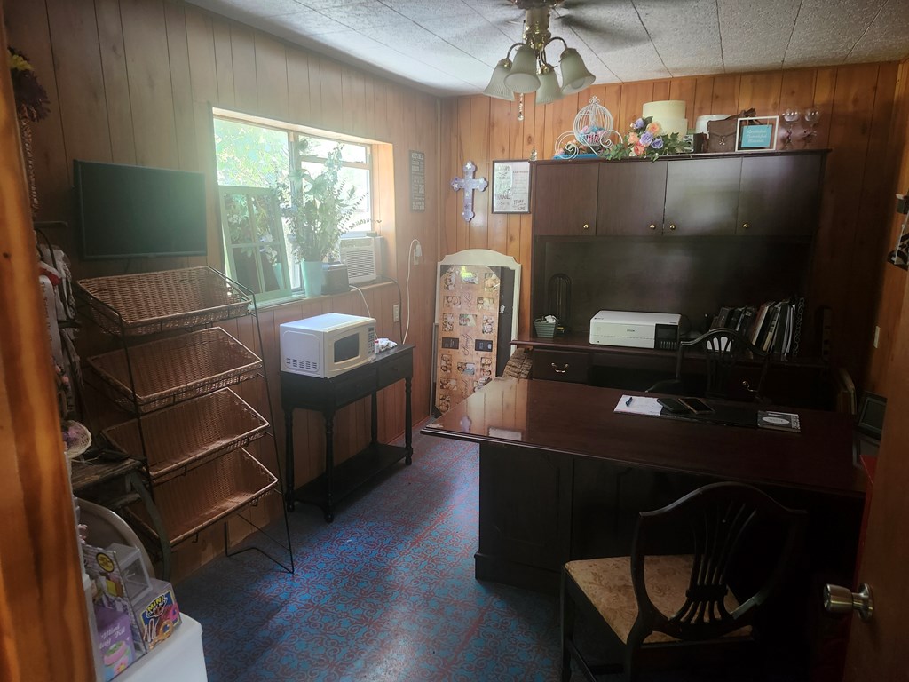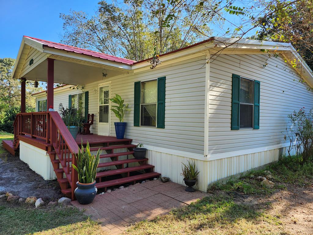 Fisherman's delight! This 1,300 sq. ft. double-wide near Hanks Creek marina is move-in ready and full of charm. Enjoy peace of mind with a new aerobic septic system, new AC, and a striking red metal roof. Cozy up by the wood-burning fireplace—there's even a stack of pecan wood waiting for you! Relax or entertain on the screened-in deck overlooking the fenced yard. A double carport leads to a spacious workshop complete with an air-conditioned, furnished office—perfect for hobbies, storage, or a home business. Make this your primary residence, your weekend getaway, or your very lucrative Airbnb!