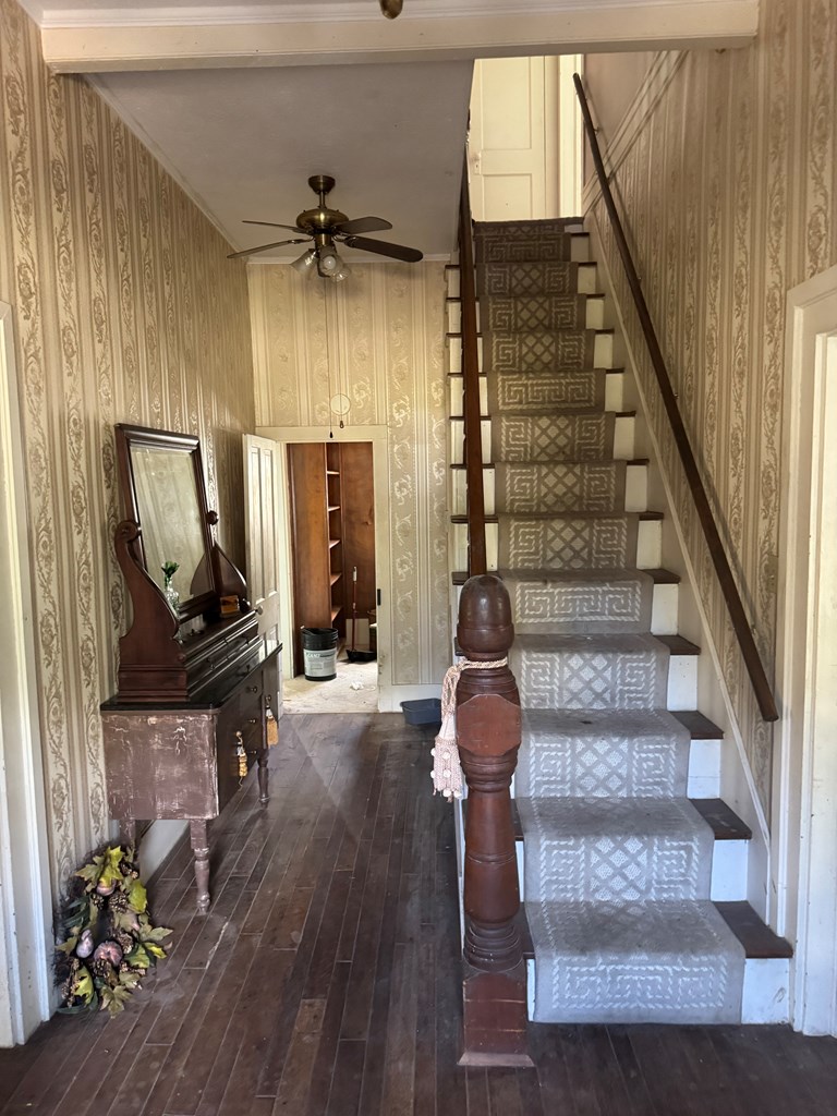 Tucked away just two streets off the main highway, in a quiet corner of a small country town, sits a beautifully preserved Colonial-style house built in the 1950s. The home exudes timeless charm with its symmetrical faade, shuttered windows that glow warm in the afternoon sun. A wide front porch, framed by stately columns, welcomes visitors with the kind of grace and hospitality you'd expect. Inside, hardwood floors stretch through the main rooms and central staircase leads to three cozy bedrooms upstairs, each with original details. The backyard opens to a patch of open land, dotted with wildflowers in the summer and the occasional deer in the cooler months. Though only minutes from the heart of town, the house feels peacefully removed, like its own little world