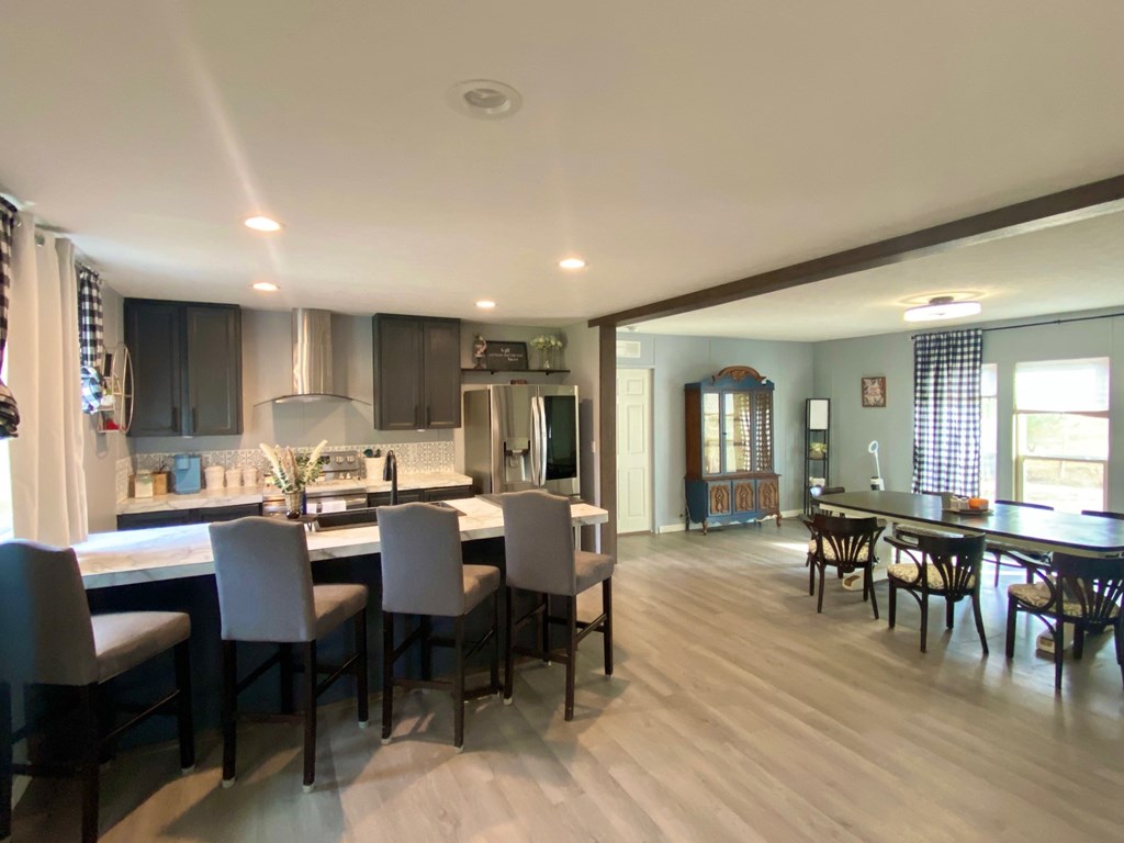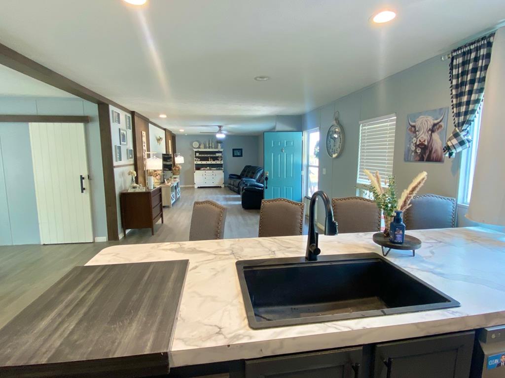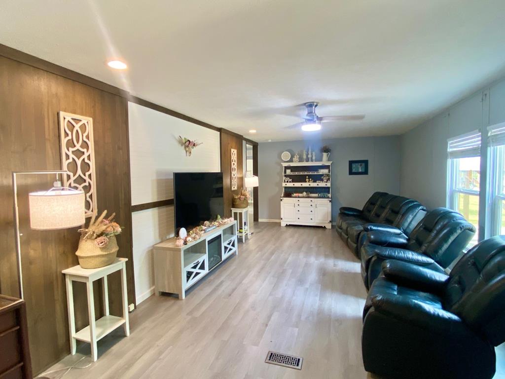 Escape the hustle and bustle of city life and discover your own slice of serenity in this beautifully updated 4-bedroom, 2-bath manufactured home situated on 1.25 peaceful acres. Built in 2018 and thoughtfully refreshed with stylish upgrades, this home blends the best of modern comfort and country charm. Step inside and fall in love with the spacious open floorplan, where the kitchen, dining, and living areas flow seamlessly together — perfect for entertaining friends or enjoying cozy family time. The kitchen is a showstopper, featuring brand-new countertops, freshly painted cabinets, a large center island, and plenty of seating space for casual meals or morning coffee. The split floor plan ensures privacy, with a huge master suite on one side of the home. The master features an enormous walk-in closet and an oversized bathroom that feels like your own private retreat. The secondary bedrooms are generously sized and share a stylish, updated full bath. Make plans to see this one now!
