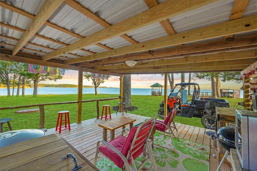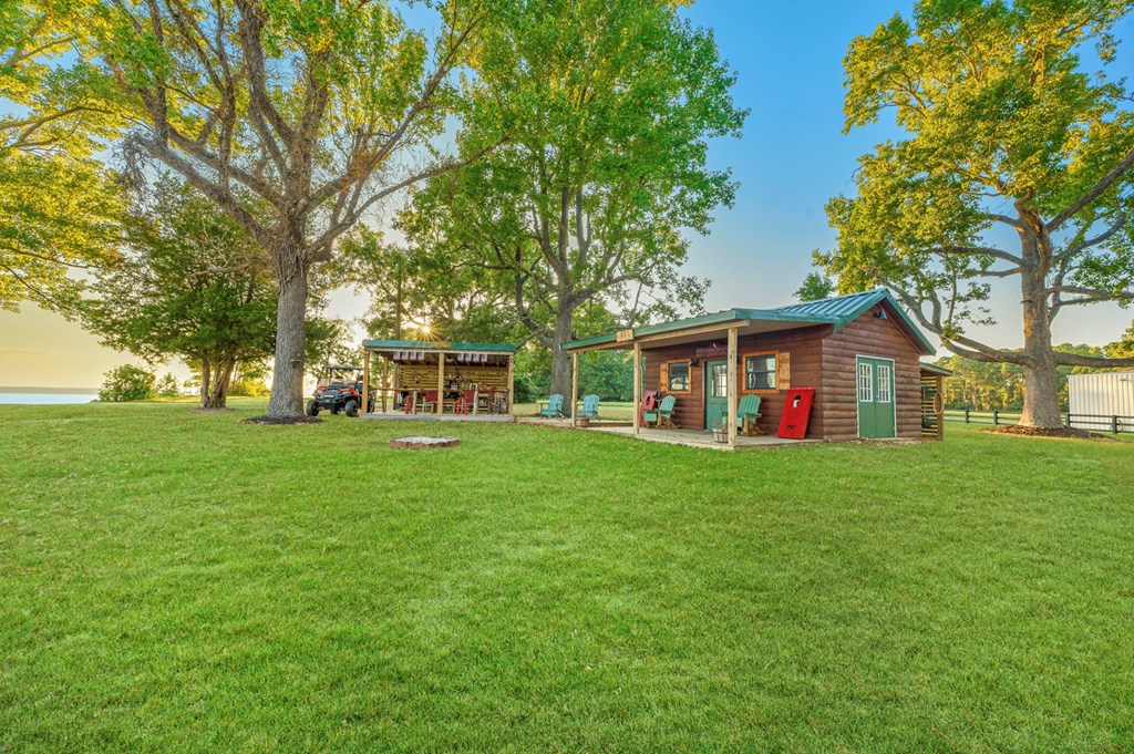 This rare 2-acre waterfront property captures one of the most sweeping 180-degree views on Lake Sam Rayburn where you can enjoy both the Sunrise and Sunsets. A newly installed 75' rock bulkhead secures the shoreline while providing easy access to the water—perfect for launching a kayak, fishing at sunset, or simply soaking in the panoramic beauty that surrounds you. Spend quiet mornings on the deck or in the gazebo overlooking the lake or enjoy peaceful afternoons on the swing beneath the grand tree, watching eagles. A cozy cabin along with an outdoor kitchen brings modern comfort with a new septic system and a 200' private well. The property also includes a 50-amp RV hookup and two 30-amp hookups, offering ample space for visitors to enjoy this one-of-a-kind retreat. Every detail reflects the serene rhythm of waterfront living—where time slows down and every view feels like a postcard.