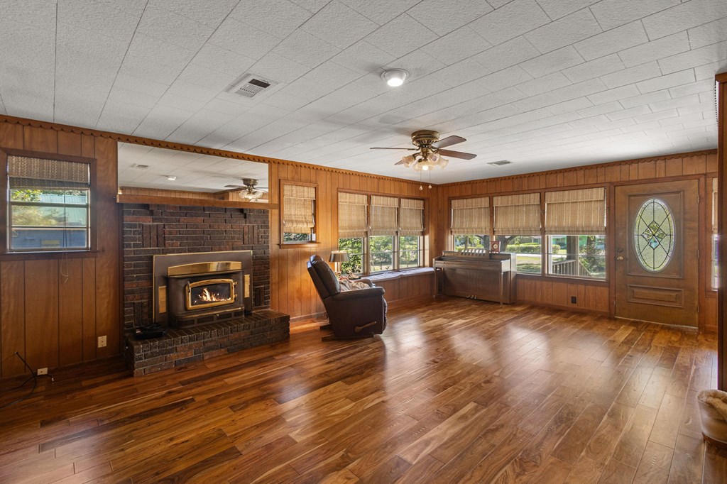 This inviting 3-bedroom, 2-bath home offers approximately 1,575 square feet of comfortable living space. The spacious family room features a cozy fireplace and beautiful views of Lake Charmaine, while the open-concept kitchen with breakfast bar makes entertaining easy. The primary suite includes a handicap-accessible soaking tub for added convenience. Outdoors, you'll find two storage buildings, a small fenced area perfect for your furry friend, and plenty of shade from mature East Texas native trees. Enjoy the benefits of the Lake Charmaine community, featuring a public park with playgrounds, three scenic lakes, a community center, and wonderful neighbors!