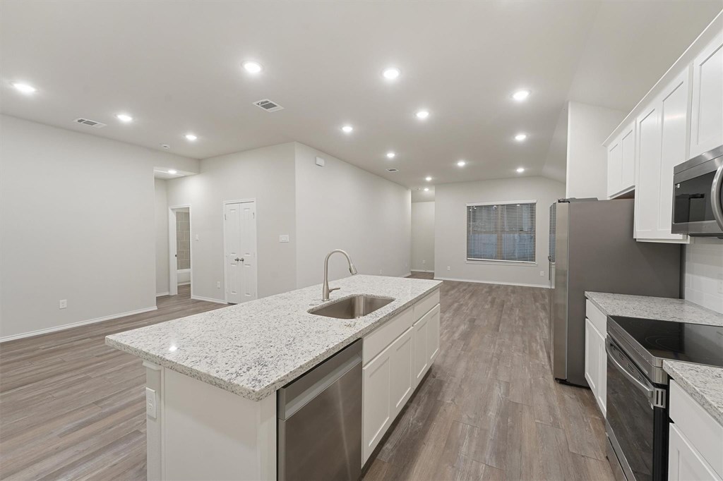 New Construction in Lufkin! This open-concept home is ideal for anyone looking for a functional, move-in ready home with modern features. The home features 3 bedrooms, 2 bathrooms, and 10' ceilings in the kitchen, living, and dining areas, giving it a bright and spacious feel. The kitchen includes an island for extra prep space, plenty of storage, and a Samsung stainless steel appliance package featuring a convection oven with air fryer, microwave, and 3-rack dishwasher. Built with energy efficiency in mind, the home includes double-pane windows, LED recessed lighting, and R-38 insulation.