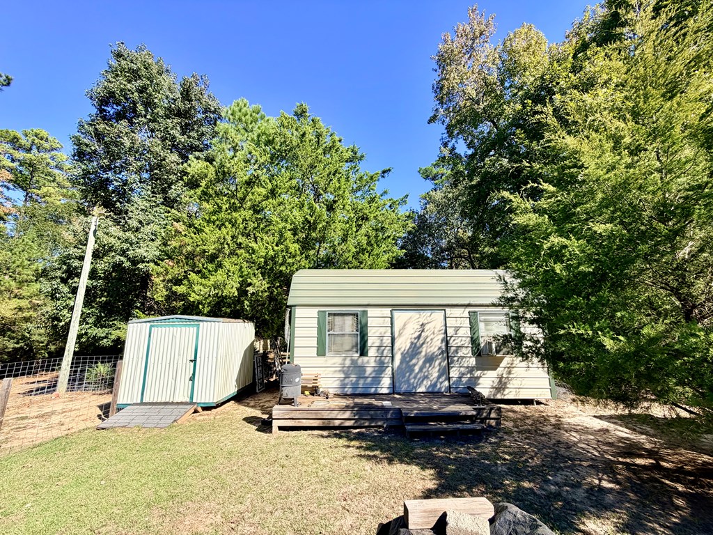 A Rare Find on Toledo Bend – Your Fairmount Retreat Awaits. Discover the perfect blend of rustic charm and lakeside serenity with this .807-acre unrestricted tract nestled in the highly sought-after Fairmount area of Toledo Bend. Tucked beneath the whispering pines, this property offers both comfort and opportunity — an ideal escape, investment, or forever home site. The main home spans 768 square feet and features 1 bedroom and 1 bath, thoughtfully designed to create a cozy, welcoming atmosphere. Step outside to find even more living potential — a small RV complete with a wrapped porch and outdoor shower, perfect for hosting guests or enjoying peaceful mornings surrounded by nature. For the hobbyist or craftsman, a shop/tool shed and portable storage building provide ample space to work, store, and create. The land itself offers plenty of room to expand or add on, giving you the freedom to dream. With no restrictions, you have the flexibility to make this property truly your own.