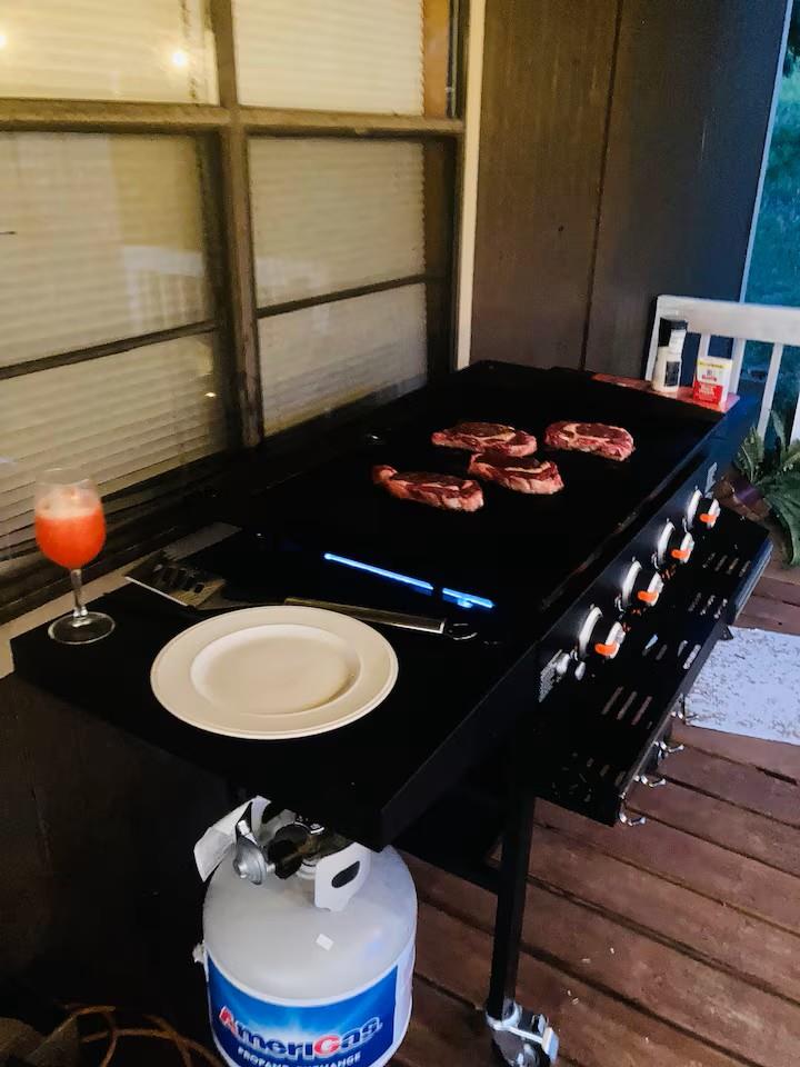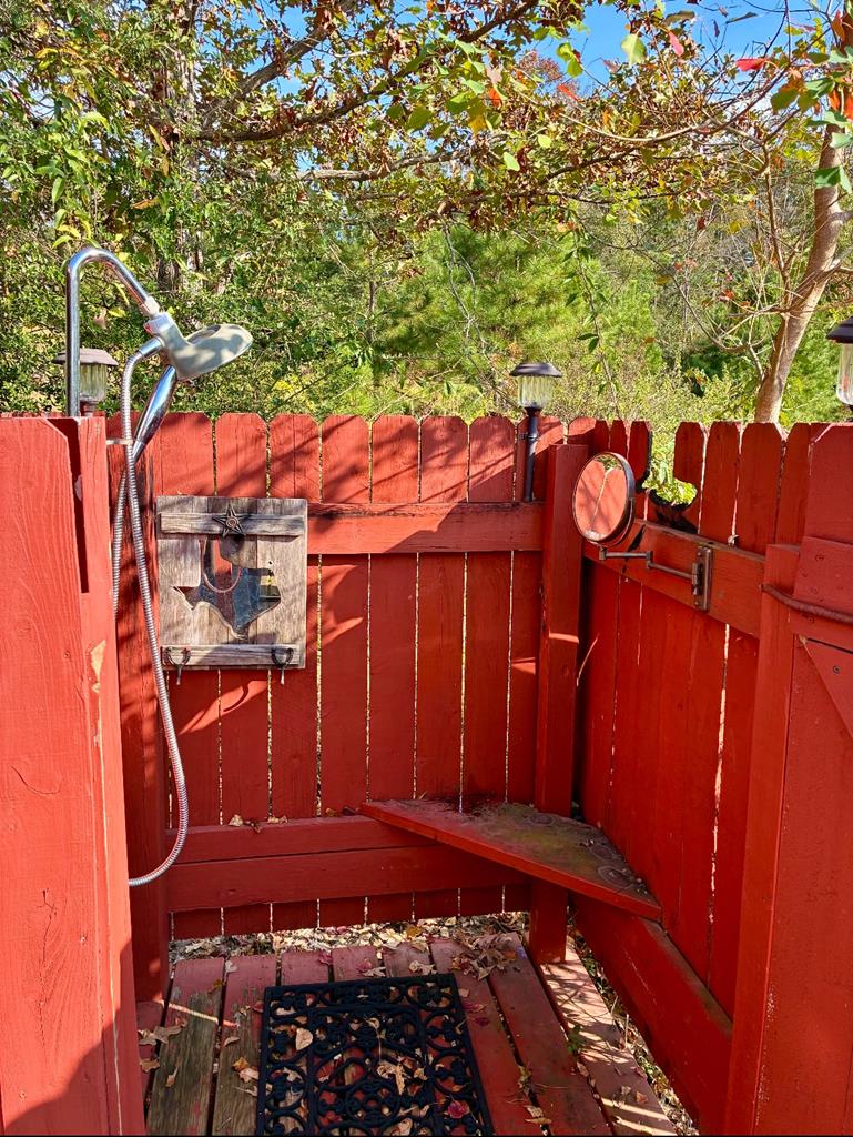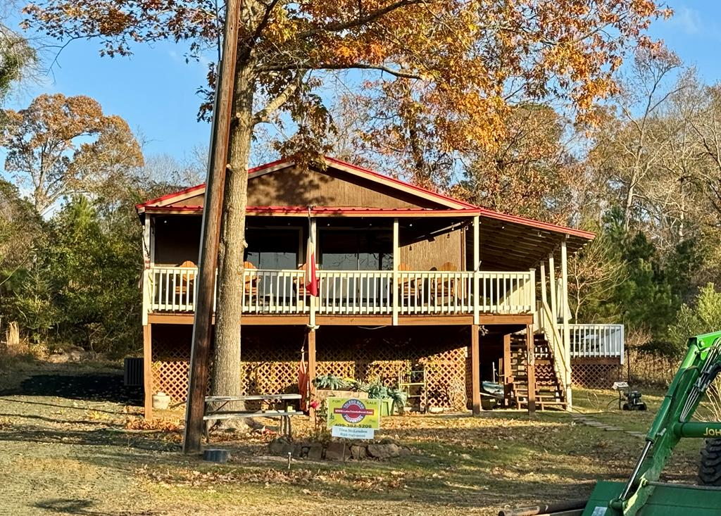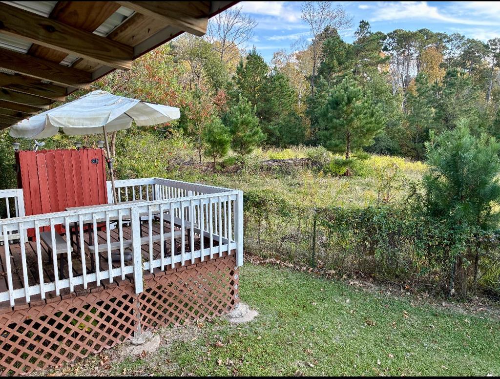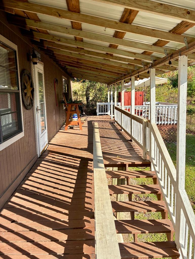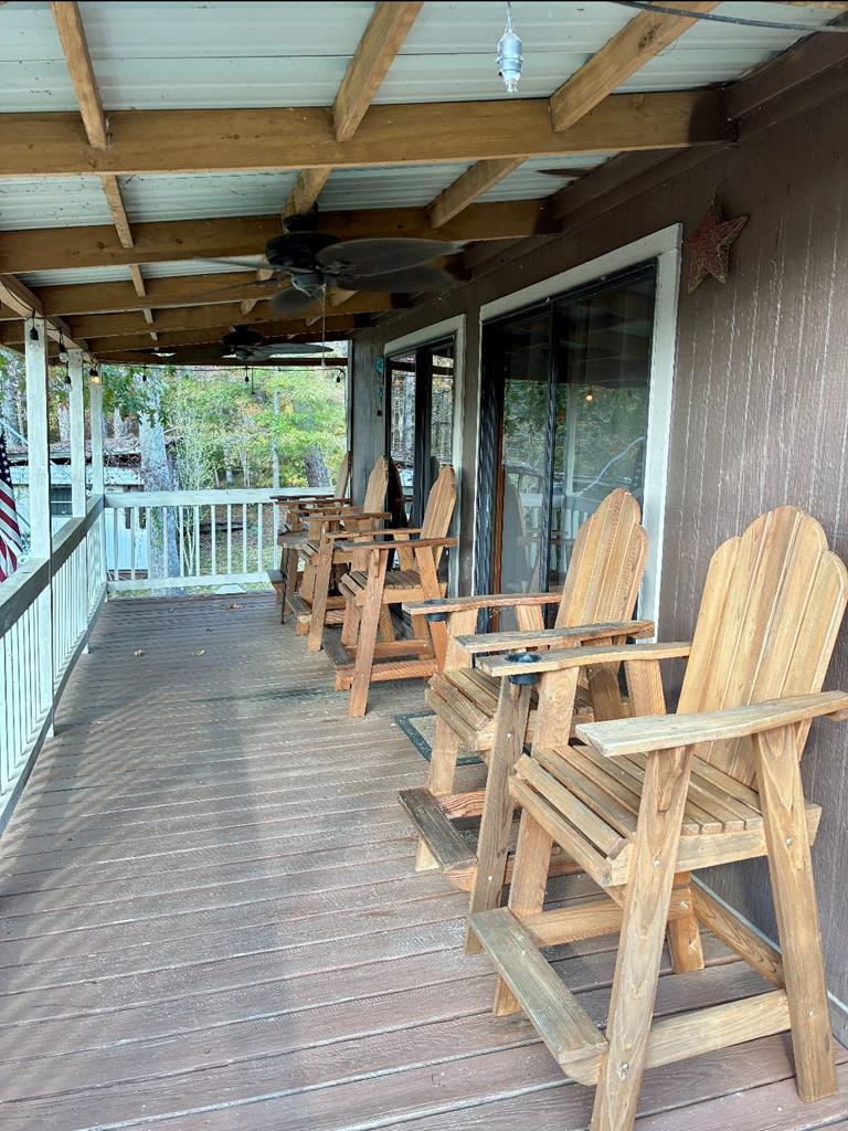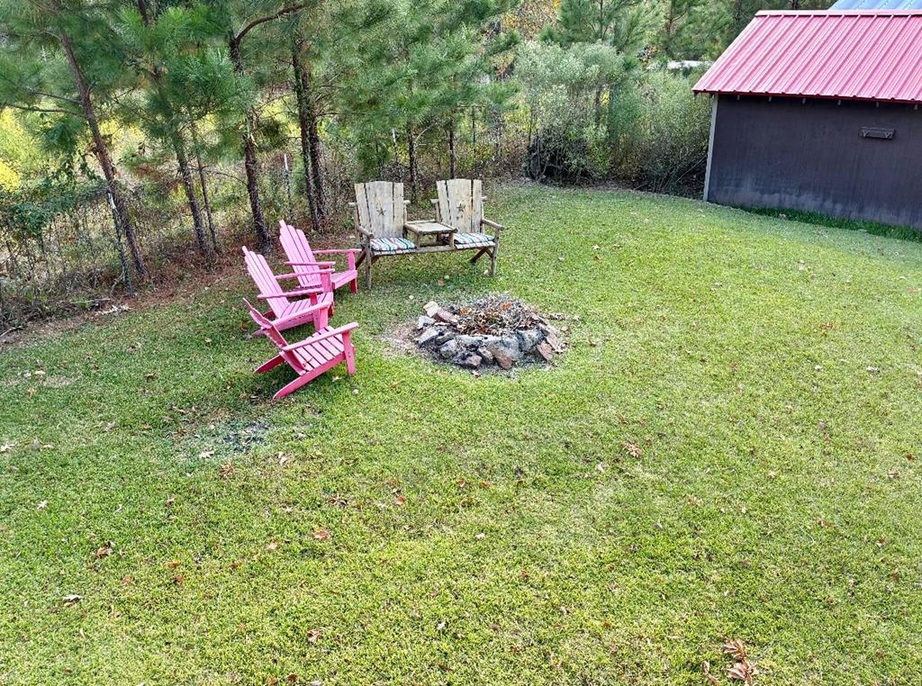 Enjoy a beautiful lake view from multiple outdoor seating areas, including six captain's chairs positioned along a spacious 180-degree porch (red roof shown in featured photo). The nicely sized yard includes a fire pit, offering an inviting space for evening gatherings. The property backs to a national forest, providing added privacy for the convenient outdoor shower area. Inside, the home is fully stocked with kitchen essentials and features a dedicated coffee bar. Furnishings negotiable, creating a turnkey opportunity. Community amenities include a private boat launch for easy lake access and a refreshing pool for warm summer days.