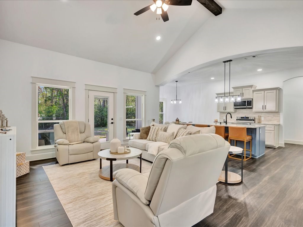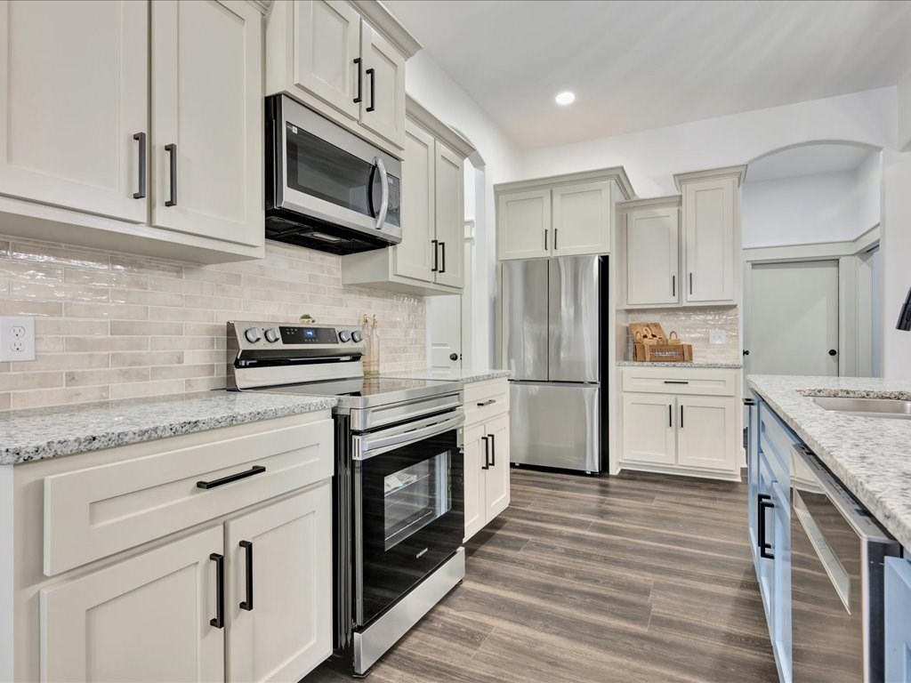 This 2025 new build residence greets you with a spacious open floor plan highlighted by cathedral ceilings, creating an airy, inviting atmosphere from the moment you step inside. The thoughtfully designed kitchen is the heart of the home, featuring barside dining for casual gatherings, a light-filled breakfast nook for everyday meals, and a generous walk-in pantry offering exceptional storage. With a desirable split floor plan, the primary suite enjoys added privacy while secondary bedrooms are tucked away for peace and quiet. Outdoor living is just as enjoyable with both a covered front porch and a covered back patio—perfect spaces to relax, sip your morning coffee, or entertain guests year-round. Located conveniently close to local amenities, shopping, dining, and more, this home delivers modern living with everyday convenience. Don't miss your chance to make this stunning new build your own.
