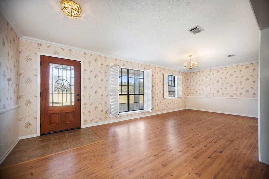 East Texas ranch ready for horses or cattle, featuring a spacious 4-bedroom, 2-bath brick home situated on over 36 acres of fully fenced, hay-producing pasture. This inviting home offers beautiful hardwood floors flowing through the hallway and all bedrooms, complemented by an abundance of large windows that fill the space with natural light. Enjoy peaceful mornings on the large covered front porch overlooking your scenic acreage. The kitchen features light, bright cabinetry and durable tile flooring designed for easy maintenance. The primary bathroom includes double sinks and granite countertops. Outside, the property is well-equipped with a shop, barn, office, and a pond—ideal for livestock, hobbies, or a true country lifestyle. This versatile ranchette offers the perfect blend of comfort, functionality, and open space. Schedule your private showing today.