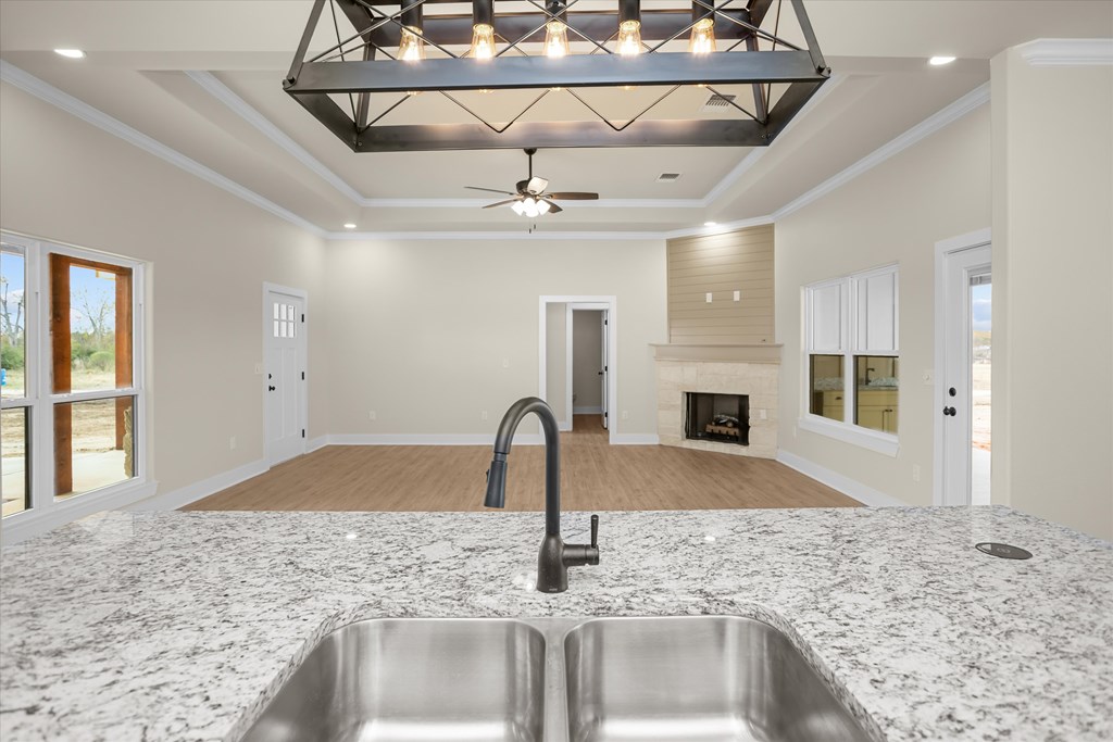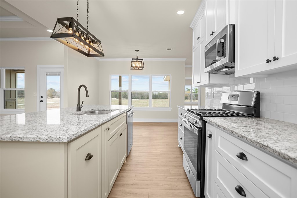 Welcome to this stunning new construction in the up-and-coming Sonshine Subdivision in the desirable Bald Hill area. Rurally located on an acre, this thoughtfully designed home offers a split floor plan that maximizes space & functionality. Impressive primary suite features double vanities, a soaking tub, walk-in shower, and an expansive walk-in closet with direct access to the laundry room complete with built-in cabinetry. Just off the garage, enjoy the drop zone space with access to half bath. The kitchen serves as the heart of the home, showcasing a gas range, ceiling-height cabinetry, granite countertops, a large eat-in island, and a walk-in pantry. The living room is anchored by a gas fireplace with painted shiplap that complements the kitchen island. Step outside to a beautiful patio with a built-in outdoor kitchen. Just add your gas grill & fridge, and you're ready to unwind! Virtually staged photos included to help envision the possibilities - some appliances not included.