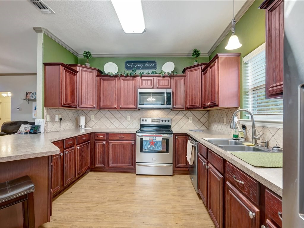 Welcome to 1435 Feagin Dr in Lufkin! This well-maintained 3-bedroom, 2-bath brick home sits on two fully fenced lots totaling approximately 0.86 acres, offering space, privacy, and versatility. Inside, you'll find a spacious open-concept floor plan with stainless steel appliances, ample cabinetry, and generous storage and closet space throughout. The covered back patio is perfect for entertaining and features a TV hookup for outdoor enjoyment. A large workshop with water and electricity adds exceptional functionality—ideal for hobbies, projects, or additional storage. Conveniently located and packed with features, this property offers both comfort and room to grow.