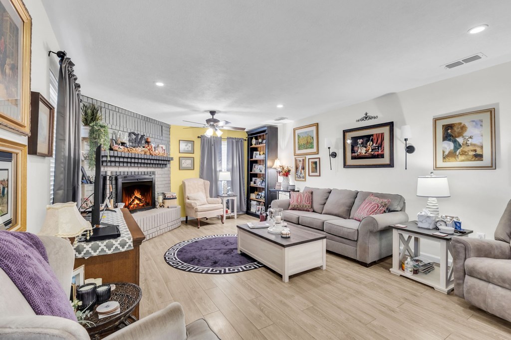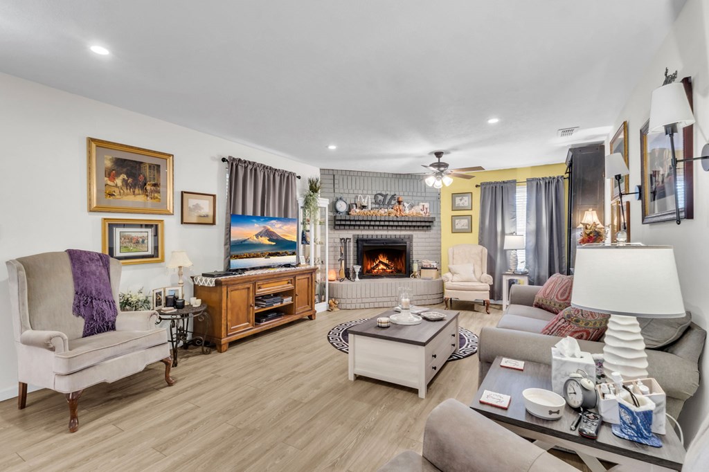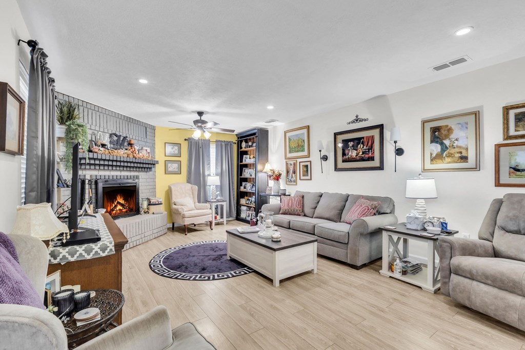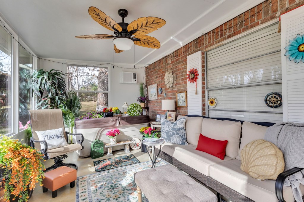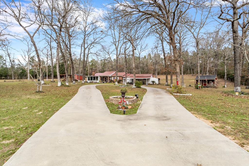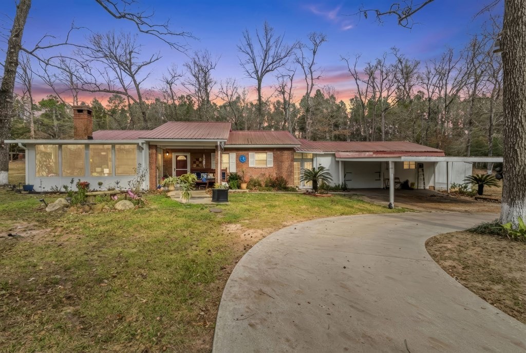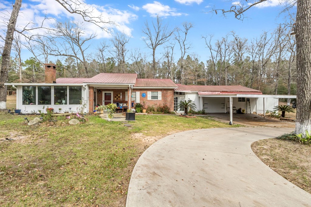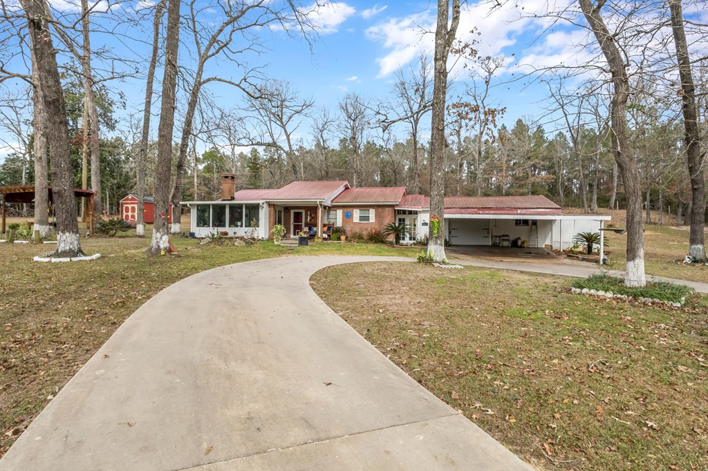 Welcome to this beautifully maintained 3.33+/- acre unrestricted property, offering the perfect balance of comfort, function, and outdoor living. The main home features 2 bedrooms and 1.5 baths with an inviting open-concept layout where the living room flows seamlessly into the island-style kitchen and dining area, anchored by a stunning corner wood-burning fireplace. Enjoy peaceful mornings in the glassed-in sunroom, ideal for relaxing and watching local wildlife. The home includes a garage, carport, circle drive, and a versatile extra room off the garage with central heat and air—perfect for a third bedroom, game room, or home office. A charming breezeway leads you to the covered back porch, ideal for entertaining. The entire property is fully fenced and features an RV shed, metal shop, and chicken coop, offering endless possibilities for hobbies, or storage. This well-manicured property is a rare opportunity for those seeking space, privacy, and freedom with no restrictions.
