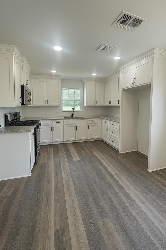 New Construction, Complete, Granite Counter Tops in Kitchen and Baths. Vinyl Plank Flooring. Electric Range, Microwave-Vent Hood. Double Pane Windows. Vaulted Ceiling in Living Room. Agent is related to seller.