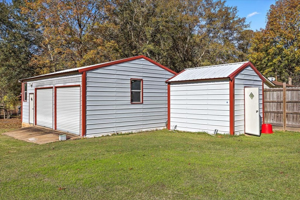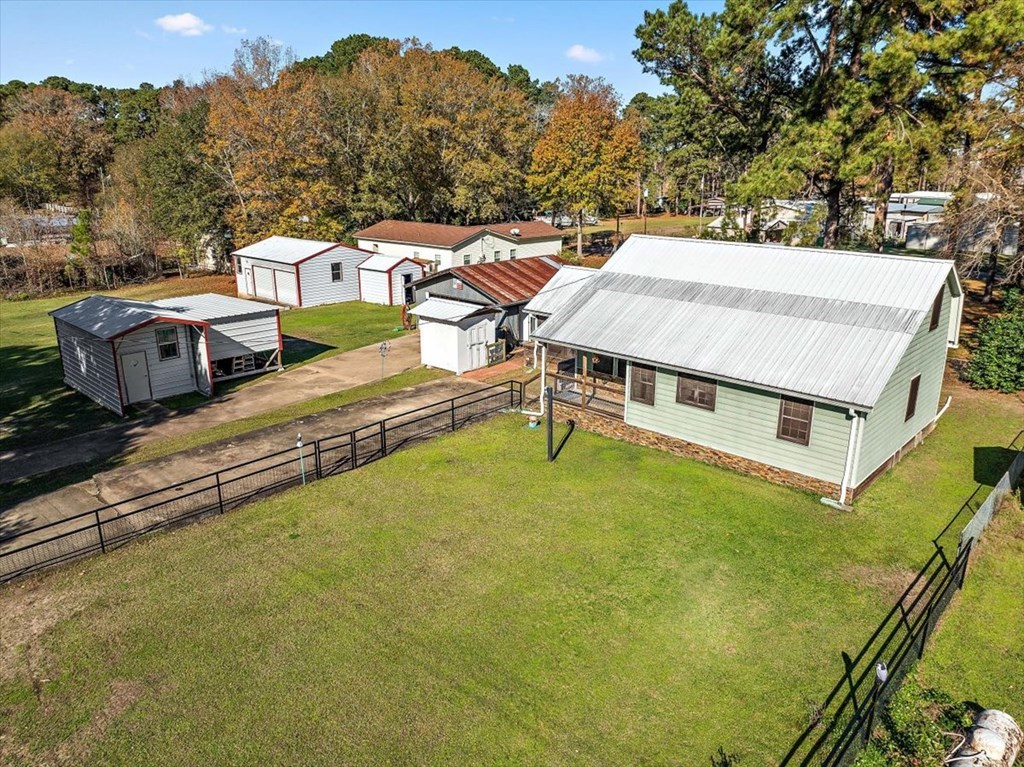 Situated on four lots totaling 0.63 acres, this cozy lake-area home is just minutes from Hanks Creek on Lake Sam Rayburn. The property offers numerous upgrades including a recently installed HVAC system (interior and exterior units), energy-efficient windows with 80-UV gold flake solar screens, and new kitchen appliances. Outside features include two driveways, ample parking, an RV hookup, and a covered boat storage area built with treated lumber—perfect for lake living. The private well provides clean, odor-free water with no sand, and the home is equipped with durable PEX plumbing throughout, including under the house and in the garage. Enjoy abundant storage and workspace with three steel buildings featuring electricity, spray-foam insulation, 10-foot walls, and A/C. Additional highlights include a solar-screened covered patio, new metal roof, and gutters. Too many features to list—a must-see near Lake Sam Rayburn!