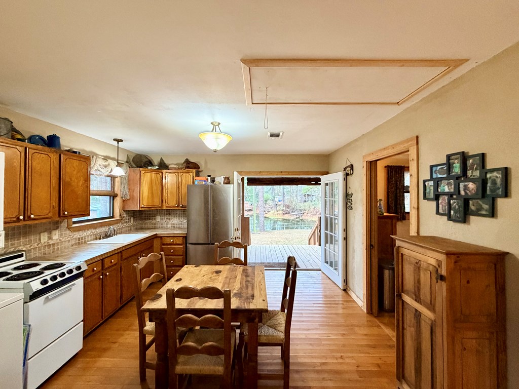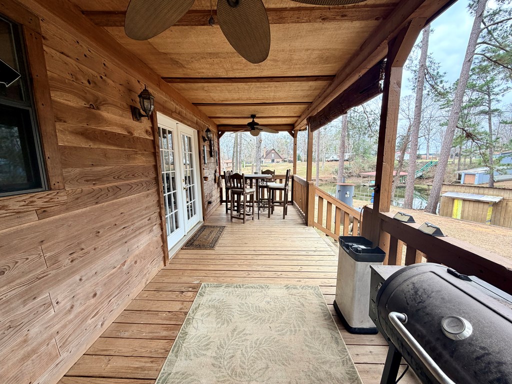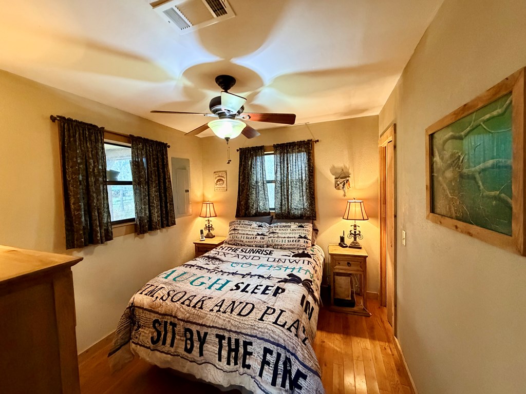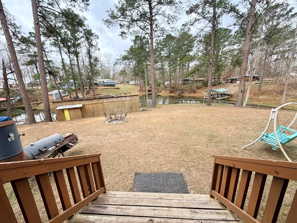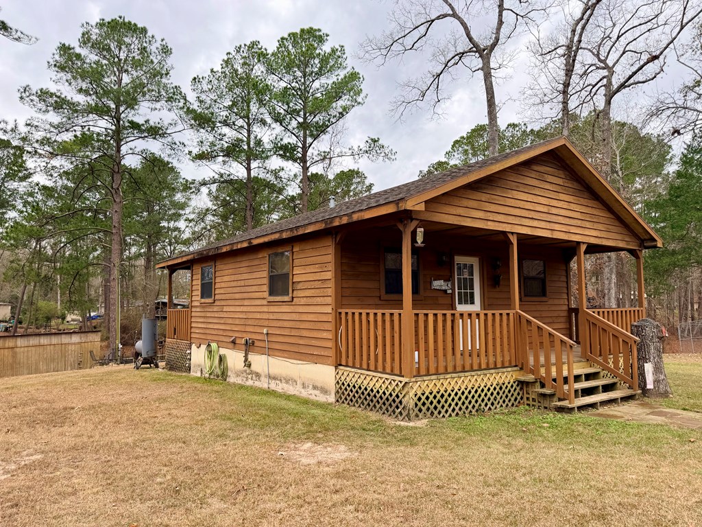 Discover this turnkey lakefront gem at 1118 Forest Glen Dr in Hemphill, TX—a compact 576 sq ft, 2-bedroom, 1-bath cabin on a 0.21-acre deeded lot that triples in usable space thanks to the generous SRA leaseback area extending toward Toledo Bend. Nestled at the end of the road in the no-restrictions zone, it offers ultimate lake access without HOA hassles. The residence comes fully furnished with appliances, lawn furniture, and essentials—sellers are leaving the riding mower, and shop tools—so just grab your toothbrush and tackle to dive into lake life. Relax on the two shaded porches with ample seating, or host overflow guests via the on-site RV hook-ups with room for a travel trailer pad. Extra rooms could possibly be added if desired, enhancing versatility for family, rentals, or resale. Lakeside perks shine with a sturdy aluminum bullhead stabilizing the shore, plus a secure two-stall dry dock building with railing dock to keep your boats protected out of the water year-round.