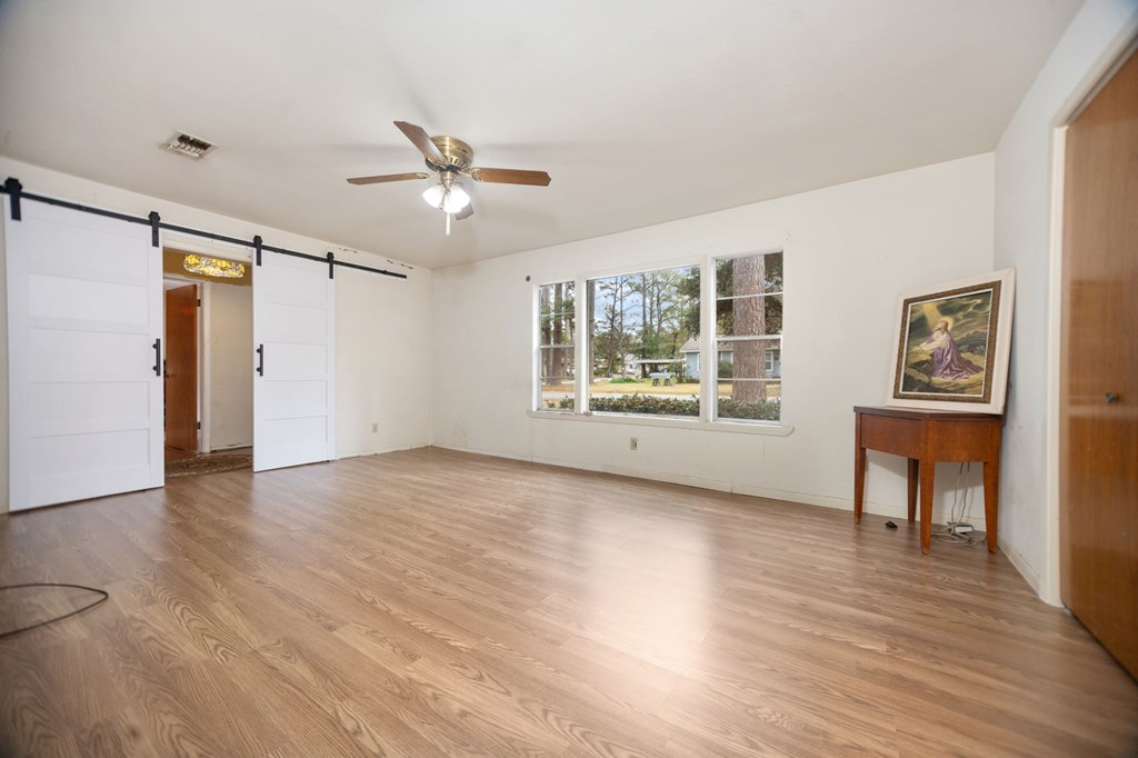 Charming 2 bedroom, 1 bath home featuring a new roof and generous bonus room that offers flexible use and could serve as a potential third bedroom, home office, workout room, or more. The oversized backyard with mature shade trees provides a peaceful setting, complete with a patio and screened-in porch ideal for morning coffee or evening gatherings.The home is tucked away in a quiet, yet easily accessible area of Lufkin ISD close to schools, shopping, and dining. Don't miss this versatile property!