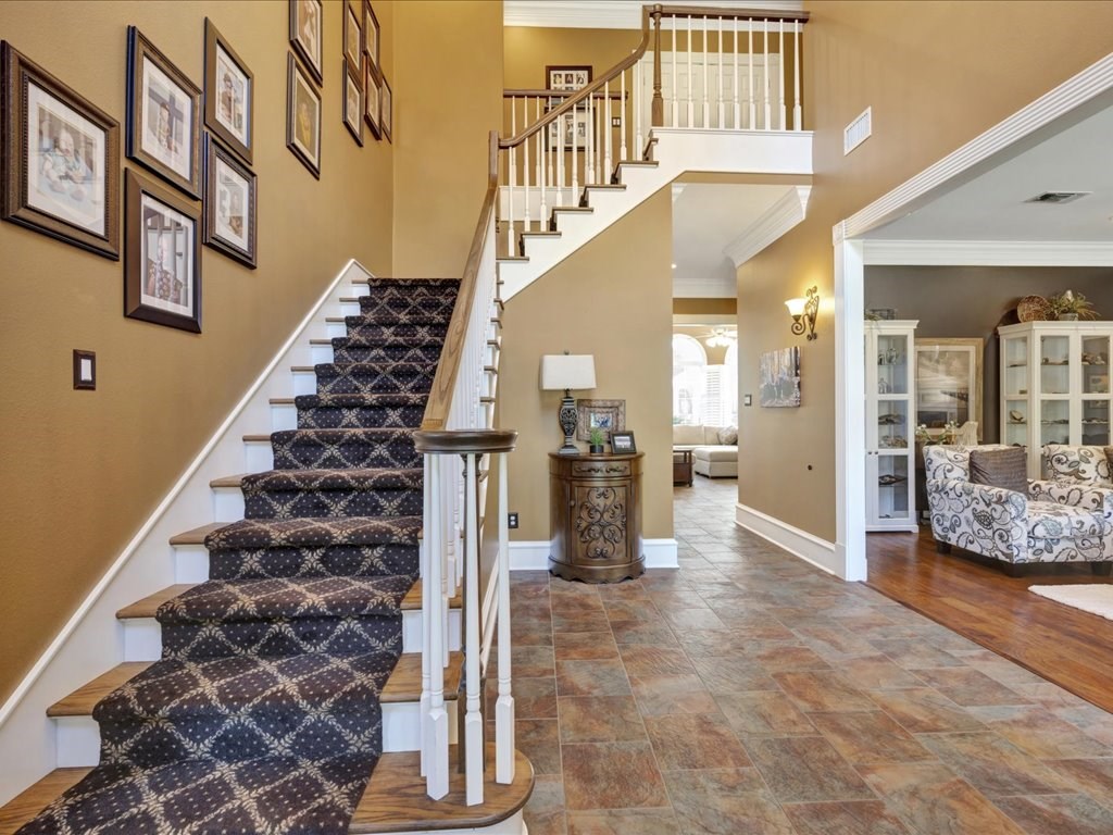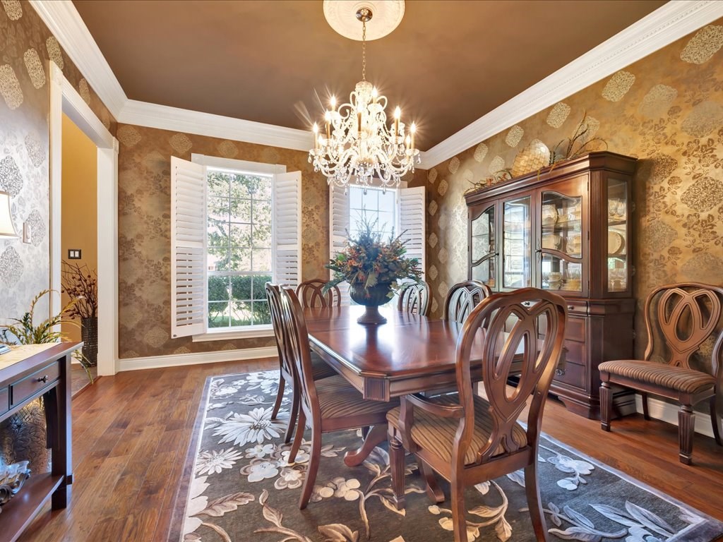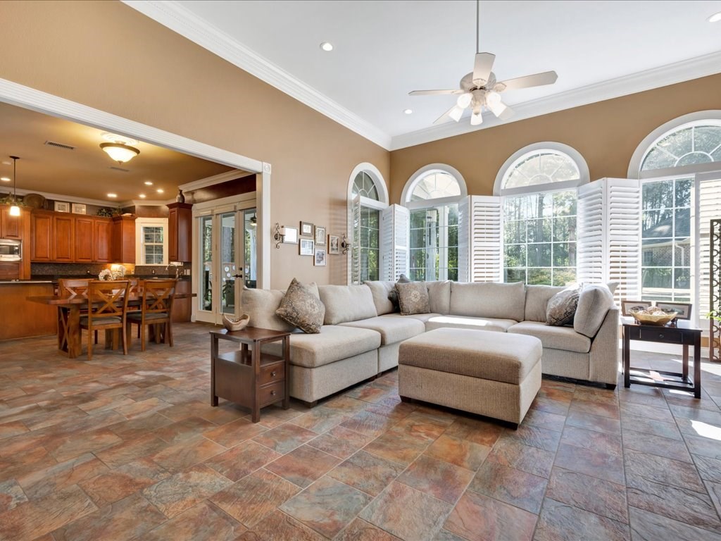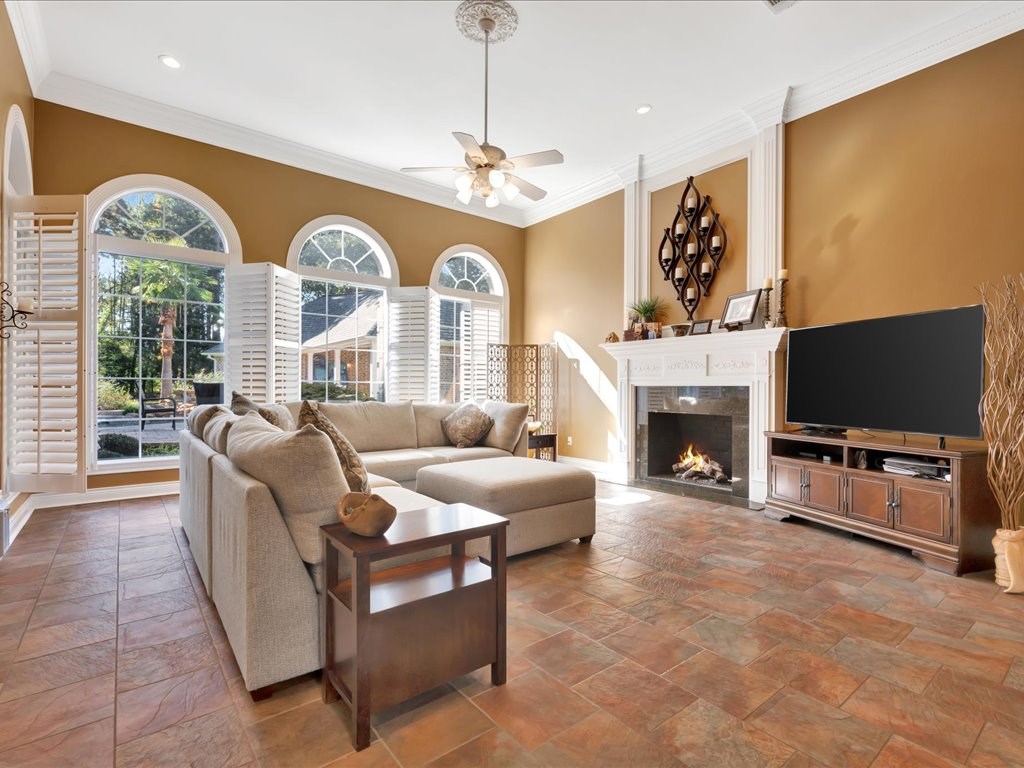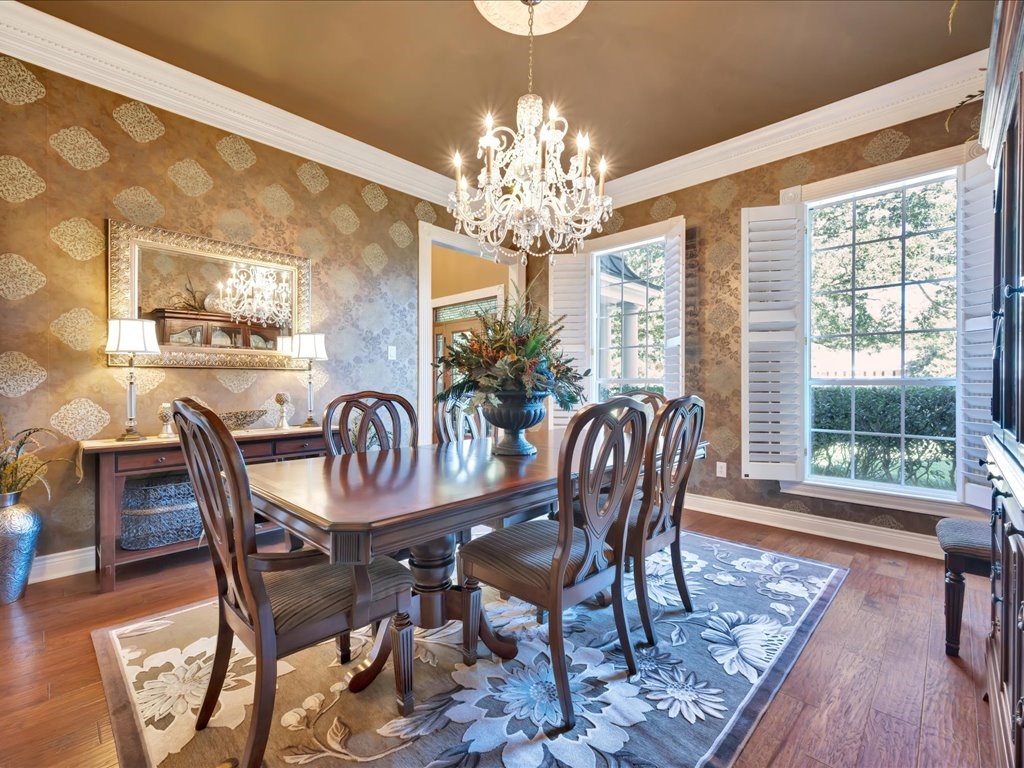 Set on a prestigious 1.7-acre parcel in the coveted Waterford Park subdivision, this 1999-built two-story estate exudes timeless elegance and modern refinement. Spanning 4,258 square feet, the home offers 4 bedrooms and 3.5 baths in a sophisticated, thoughtfully designed layout. Elevated ceilings, crown moldings, and a first floor primary suite create a bright, airy atmosphere, while the exterior's gorgeous styling and circular drive convey a sense of arrival worthy of a luxury residence. The backyard is a true entertainer's paradise, seamlessly blending indoor and outdoor living. A deep, covered patio, heated and cooled for year-round use, opens to a Pebble Tec pool with a hot tub and a gas firepit—perfect for alfresco gatherings and quiet evening ambiance. The pool house features a kitchenette, a three-piece bathroom, and a dedicated office, providing versatile space for guests, a home gym, or a private work area. The roof was recently replaced with a 50 year shingle.