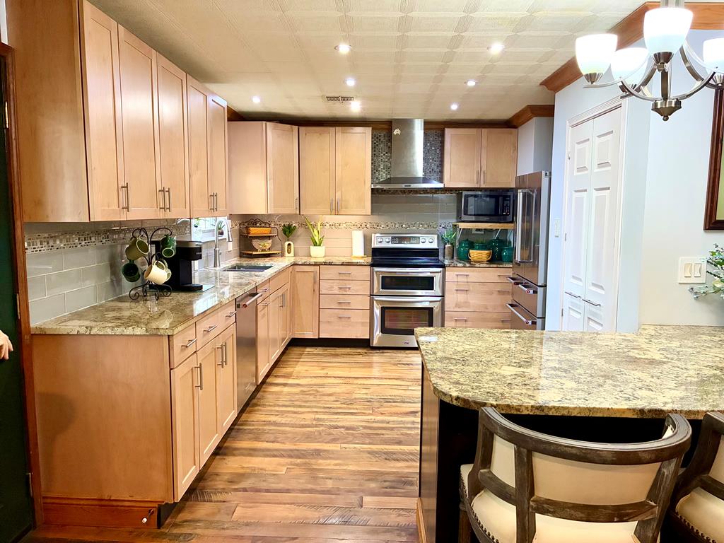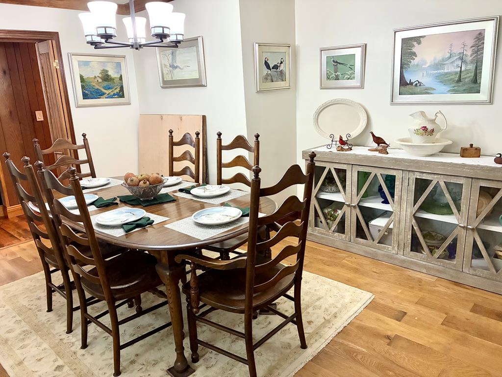 A refined waterfront retreat showcasing custom materials throughout, this home blends natural elegance w/ elevated comfort. The heart of the residence is an open kitchen/family room, anchored by a wood-burning firebox that brings warmth & ambiance to the space. The kitchen's birch cabinetry pairs beautifully w/ the home's antique beech wood floors creating a rich, organic aesthetic. The primary suite offers a serene escape w/ separate closets & a generous walk-in. A spa-inspired bath featuring a luxurious soaking tub & tile shower. Breathtaking lake views extend from most rooms. One of the property's most exceptional features is the meditation room suspended over the water—a tranquil sanctuary unlike anything else. Just outside, a covered 2025 party deck provides an impressive setting for entertaining, while enjoying the peaceful lake backdrop. A rare combination of craftsmanship, serenity & luxurious lakeside living—this property is designed to impress!