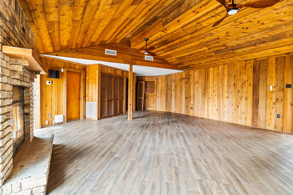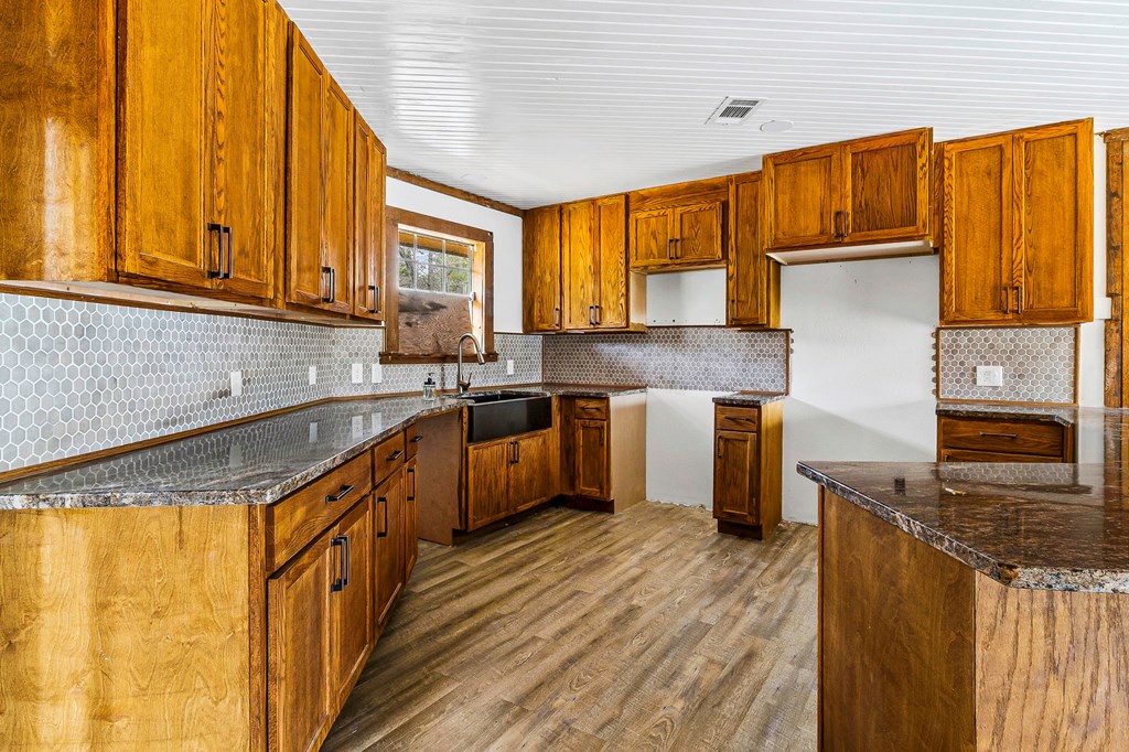 Hillbilly Heaven Twofer! 2 houses, 3 lots! Primary house is a split floor plan with 2 BR 2 bath, large living room, wood walls and ceilings, large fireplace with patio doors on each side. One bath has a walk in tub, the other a walk in shower. No appliances, Nice kitchen cabinets with granite tops. Wood deck on three sides. Second house is a tiny house, 1 room , open concept, features wood heater, window AC, claws foot tub, small oven and cooktop unit, back porch has been enclosed for year round enjoyment. All this plus an extra lot between the houses.